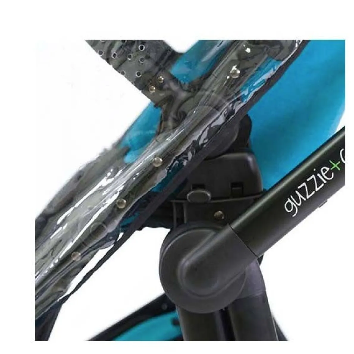 The Guzzie + Guss 3-in-1 rain cover allows your child to stay dry and cozy while the weather is stormy. Its unique design will fit onto most brands of bassinet, infant car seat or stroller POD seat. The quick-access zipper door allows you to easily remove baby without having to remove the rain cover.