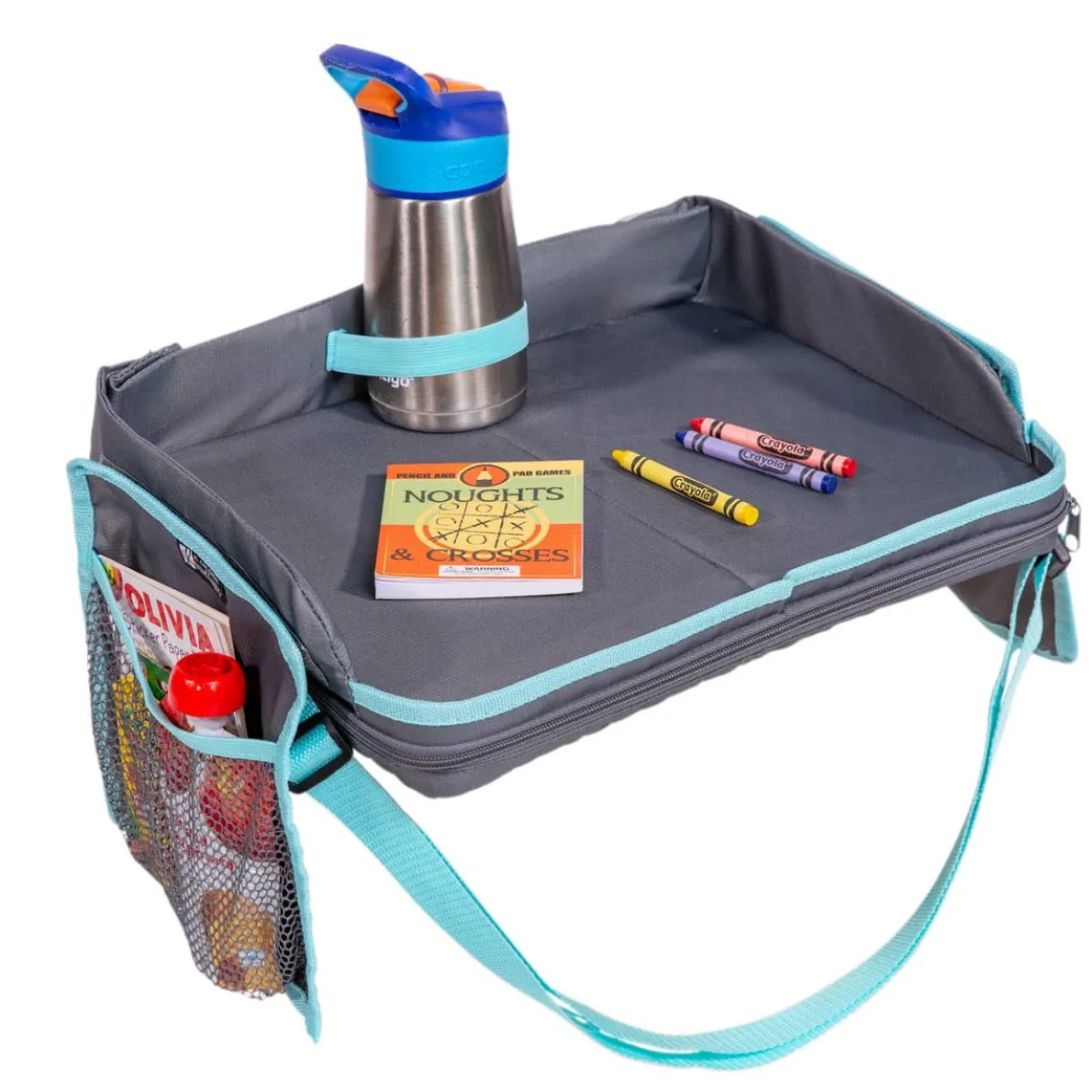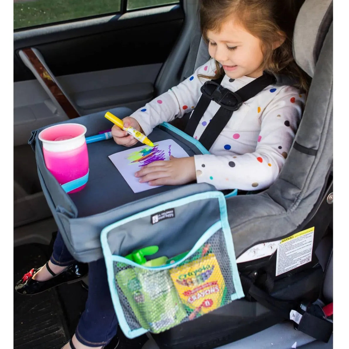 The J.L. Childress 3-IN-1 Travel Lap Tray and iPad Tablet Holder will keep kids happy and entertained when on the go! Make road trips, airplane rides and all adventures with kids easier and more fun with the J.L. Childress 3-IN-1 Travel Lap Tray and Tablet Holder. This sturdy lap tray features raised edges to keep toys from rolling off and prevents spills. The tray has two detachable mesh pockets that can hold snacks, crayons, toys and more. The pockets can easily be detached and stored inside the large zippered compartment. A convenient cup holder keeps drinks easy to reach for kids and a buckle strap secures the tray around the child’s waist. Turn the tray over and a full-size tablet holder will keep toddlers and kids peacefully entertained on road trips or any travel adventure. The tablet holder fits all sizes of iPads and tablets and can be used in the car, on an airplane or in a stroller. The J.L. Childress 3-IN-1 Travel Lap Tray and iPad Tablet Holder can also be used as a travel tote bag! Toddlers and kids love carrying their own, special travel bag and the large zippered compartment in the travel tray holds their favorite coloring books, markers, toys, and more. The shoulder strap is fully adjustable. Made out of durable, wipe-clean materials, the J.L. Childress 3-IN-1 Travel Lap Tray and iPad Tablet Holder is sure to become your favorite travel product for kids! Folds in half for compact storage.