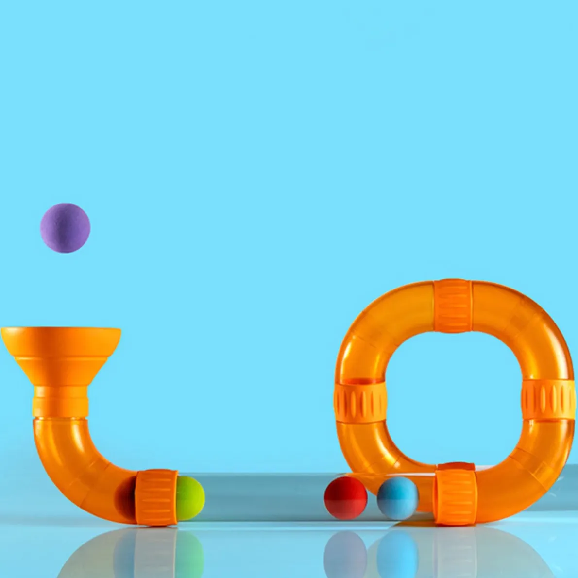 - Kid-safe turbine that sends foam balls flying through a network of modular tubes