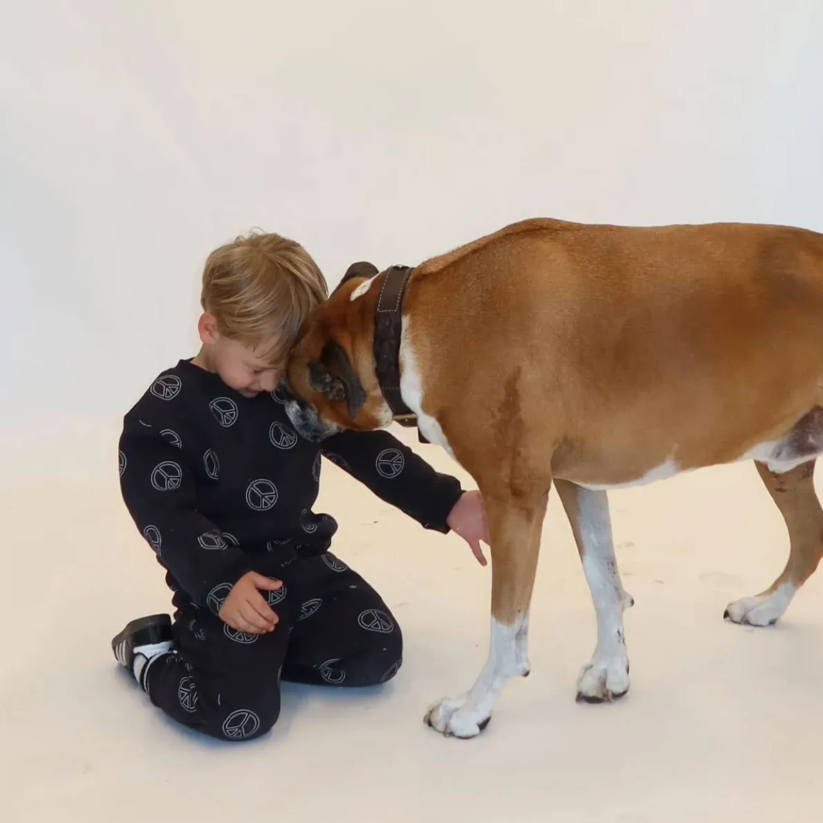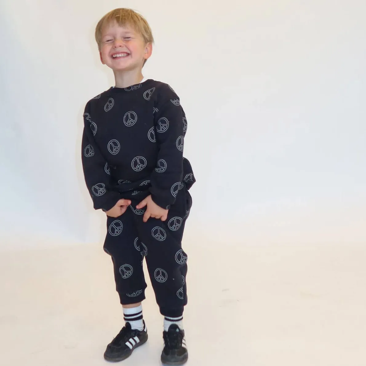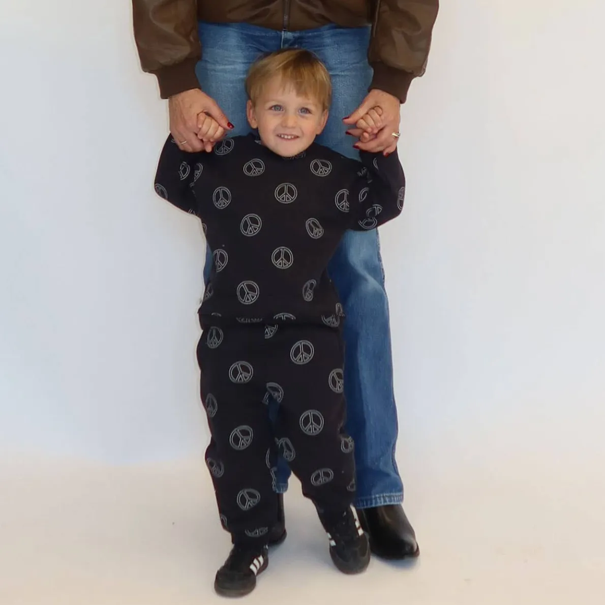 One of the most iconic prints! Catch the All Over Peace Sign in Kids Best Friend Crew.