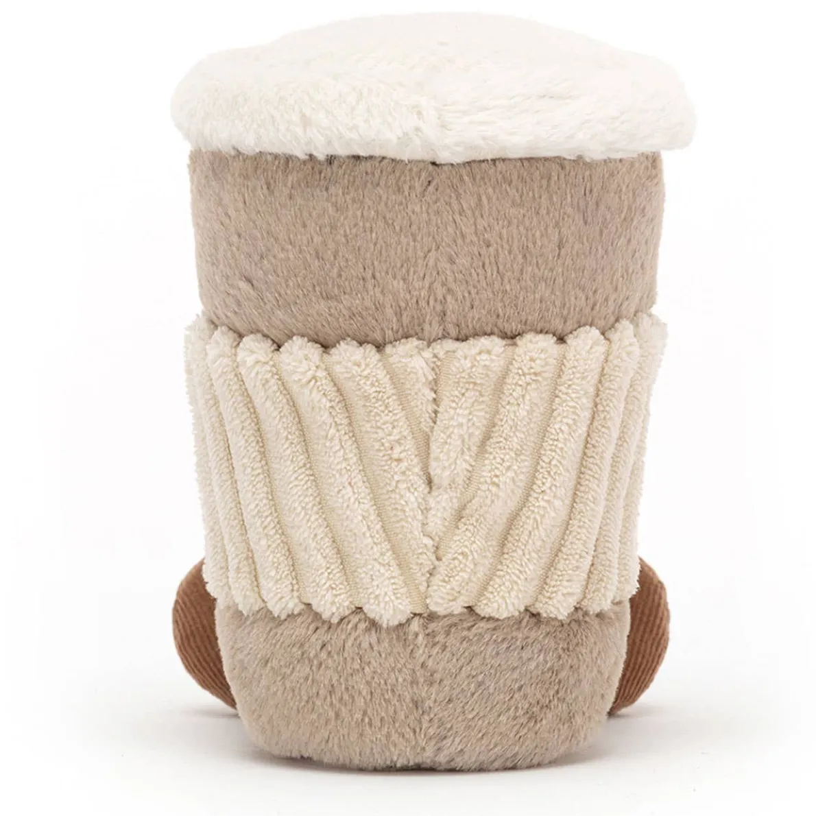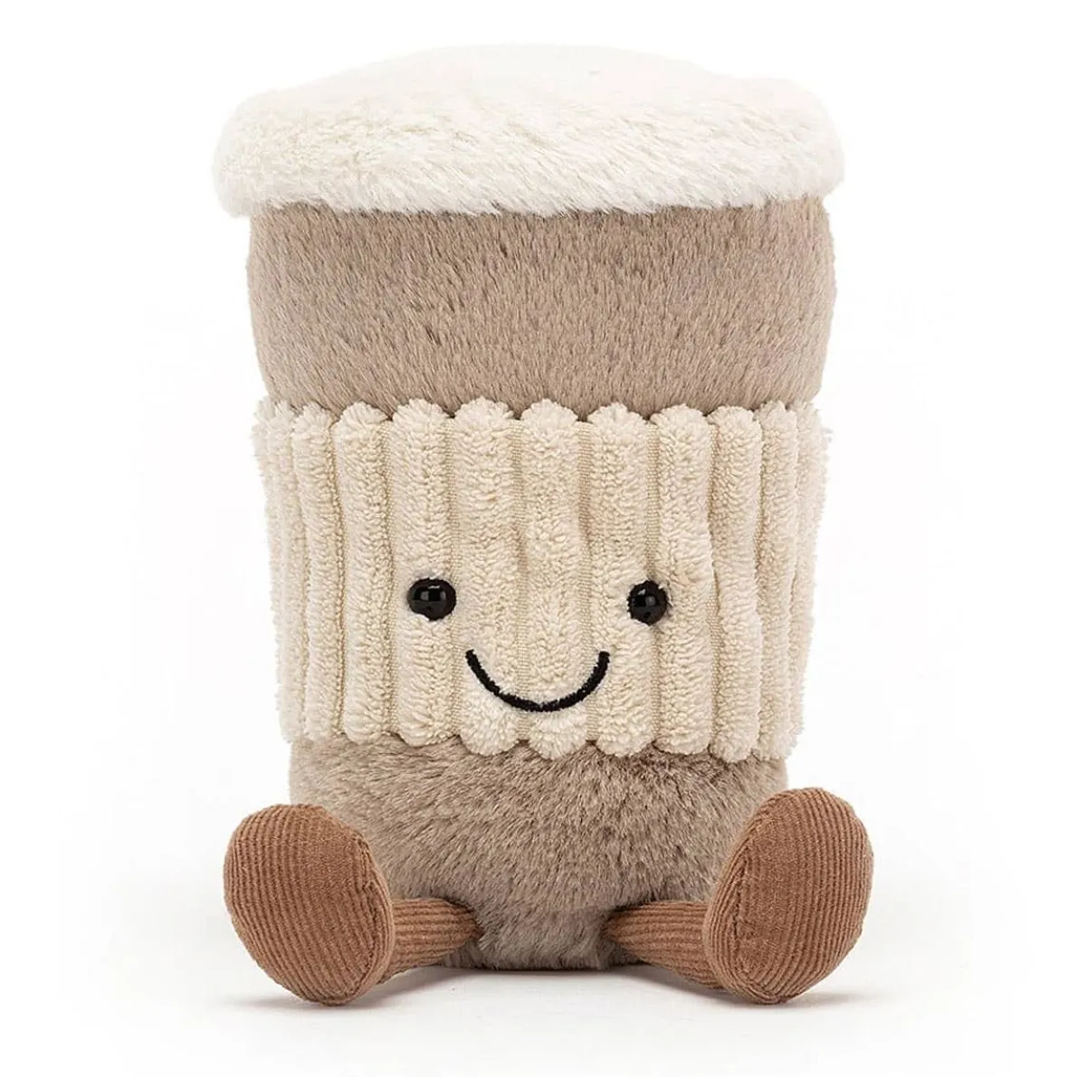 The perfect partner for busy, dizzy days, that’s Amuseable Coffee-To-Go! This nuzzly neutral cup is a keeper, with soft mocha fur, brown cordy feet and a chunky cordy tummy band. Start the morning with a smile!