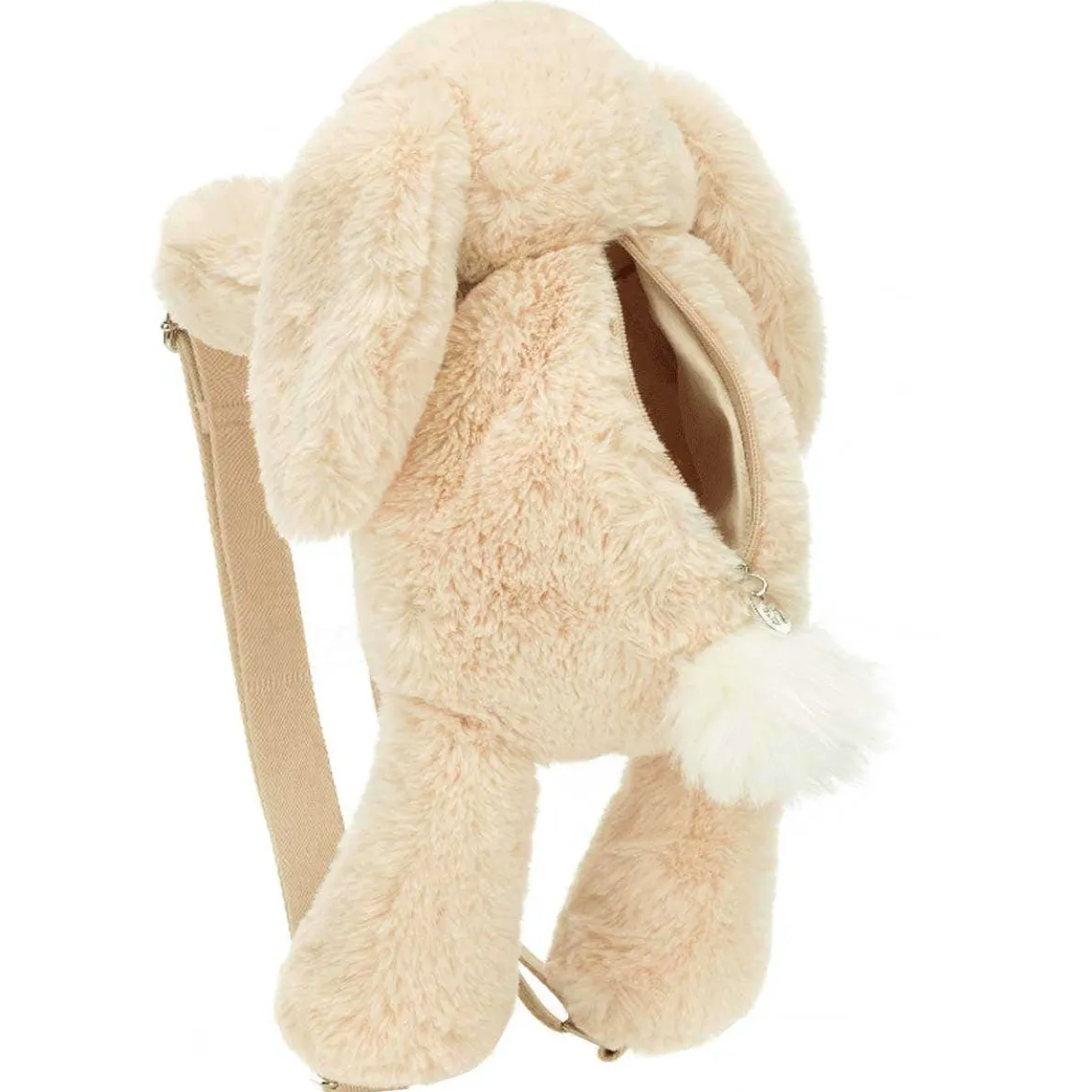 Wherever you bounce, take everything you need in the Smudge Rabbit Backpack. Soothing and soft in oatmeal fur, with a snowy bobtail and long lop-ears, this fully-lined bag has a silver zipper and Jellycat tag. With adjustable straps in strong beige webbing, this bunny’s a travel essential.