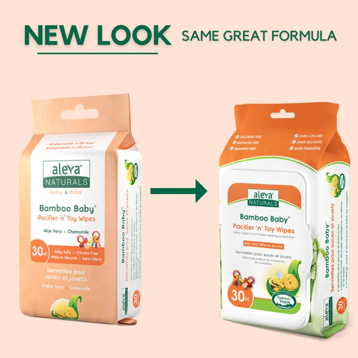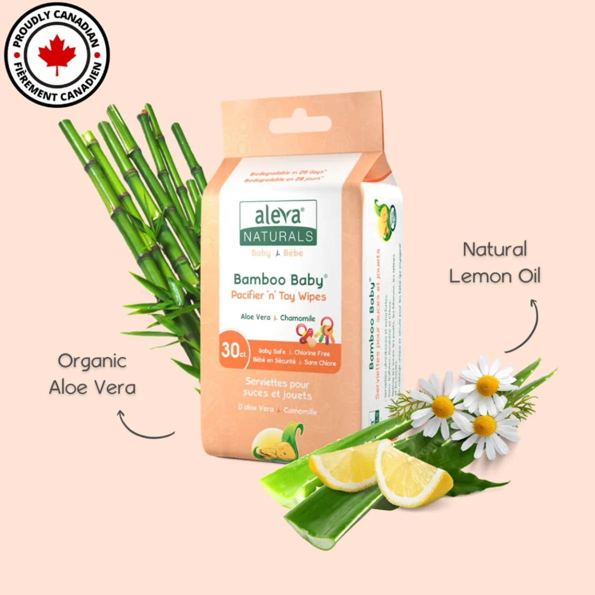 Kids tend to drop everything, regardless of where they are. They also put everything in their mouths. Are you looking for an easy solution to keep your mind at ease? Look no further than Aleva Naturals® Bamboo Baby® Pacifier & Toy Wipes. Not just for toys and soothers, these wipes are gentle and safe for cleaning bottles, nipples, surfaces and more. Enriched with Organic Aloe Vera and Chamomile Oils, these extra-strong and ultra-soft wipes will give parents the peace of mind that dirty toys are not entering their child’s mouth. The compact packaging design makes it easy to fit in a purse or diaper bag.