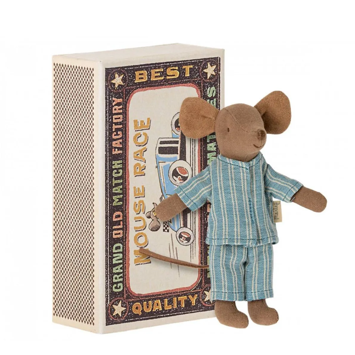 A classic Maileg item. This mouse is ready for hours of play and sleeps tight in the matchbox. The clothes and bed linen come in unique prints and beautiful colours.