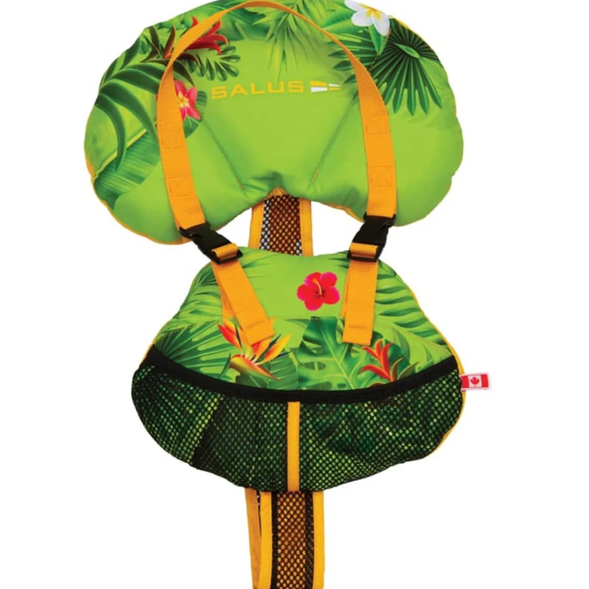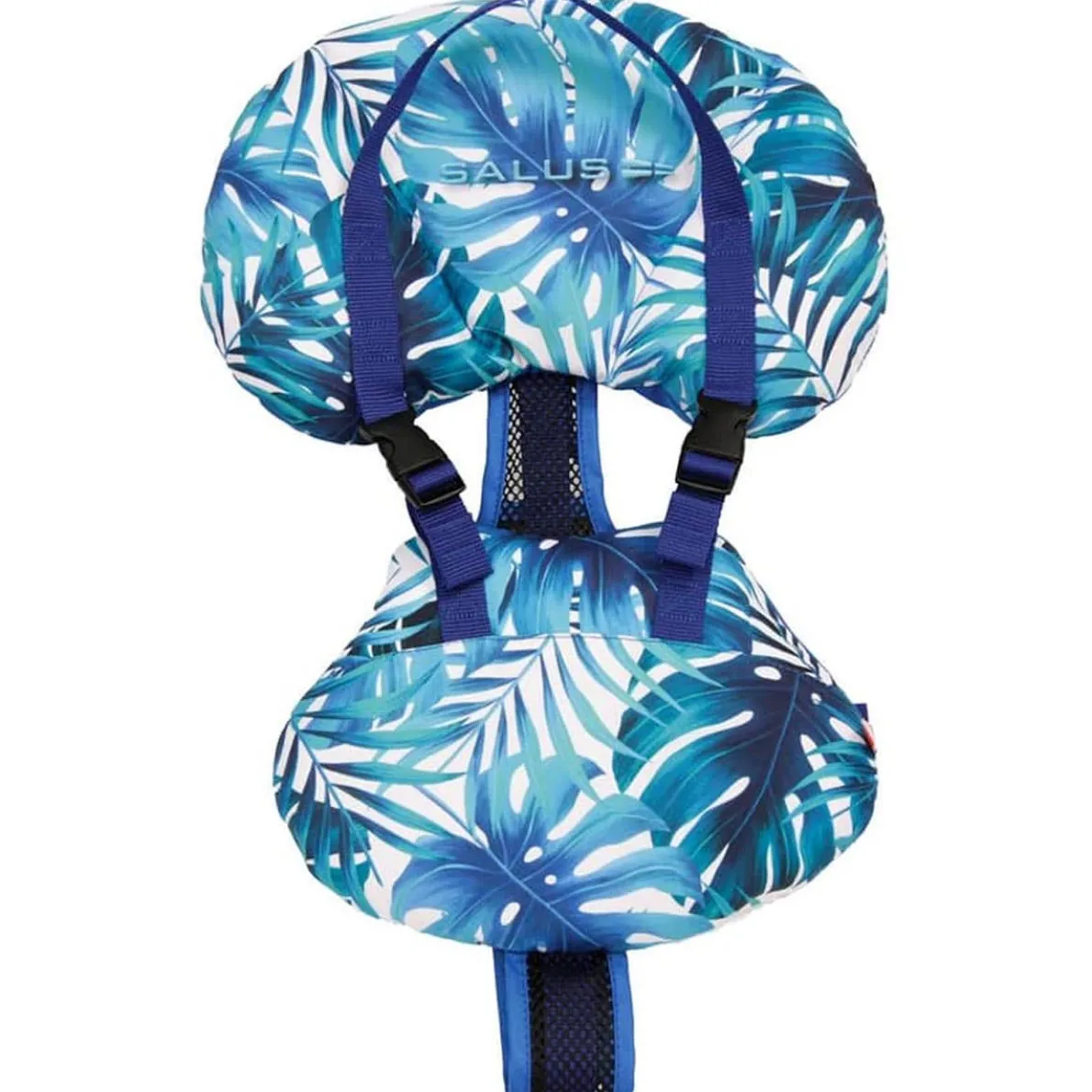 As parents, we put safety first. In designing the Salus Bijoux, we stepped outside the confines of existing standards to offer unprecedented security, safety and comfort for babies 9 – 25 lbs. The front design ensures that baby turns face-up from a face-forward position. The collar cradles the head when lifted by the strap or while floating. Mesh harness and short front enhance comfort sitting upright, lying down, or in a baby carrier.