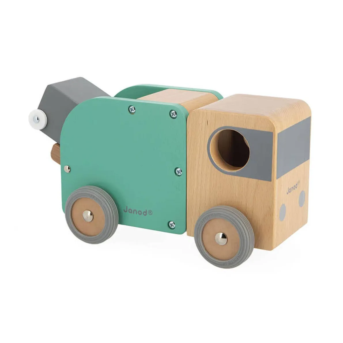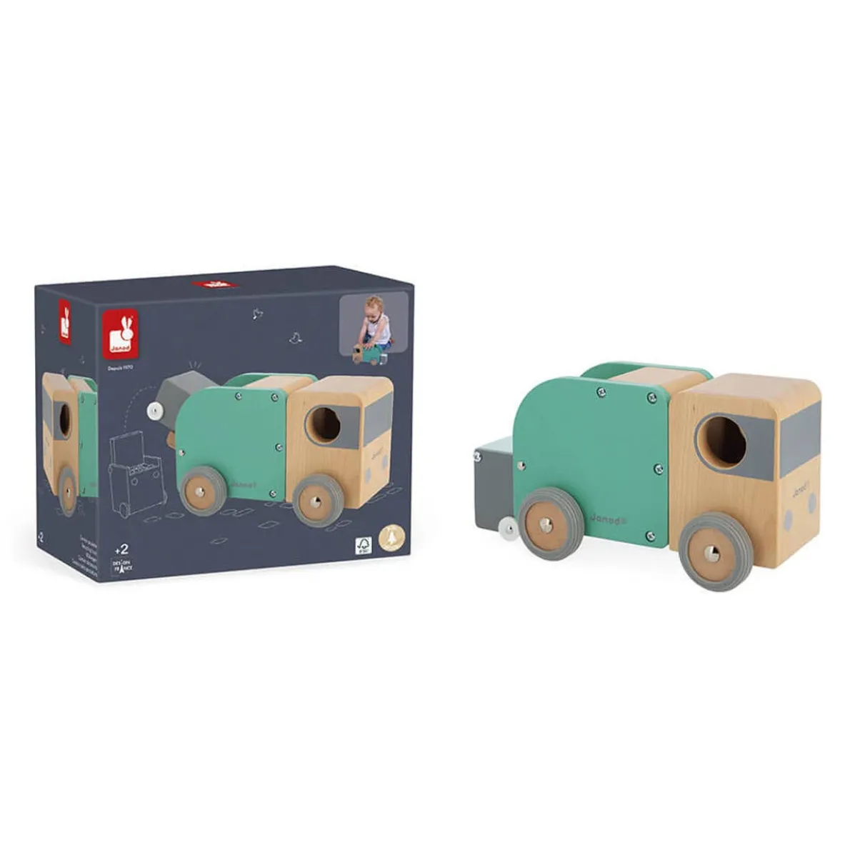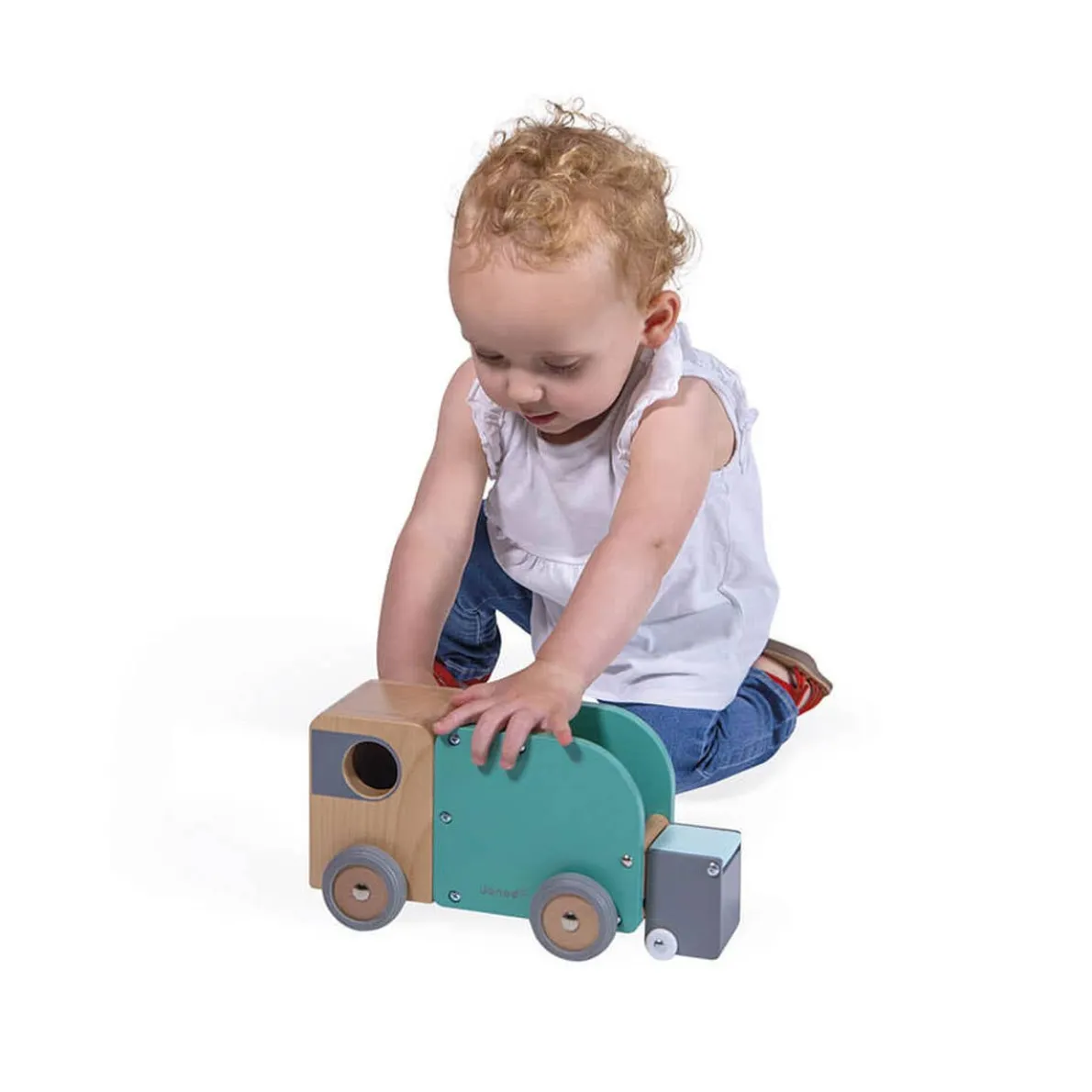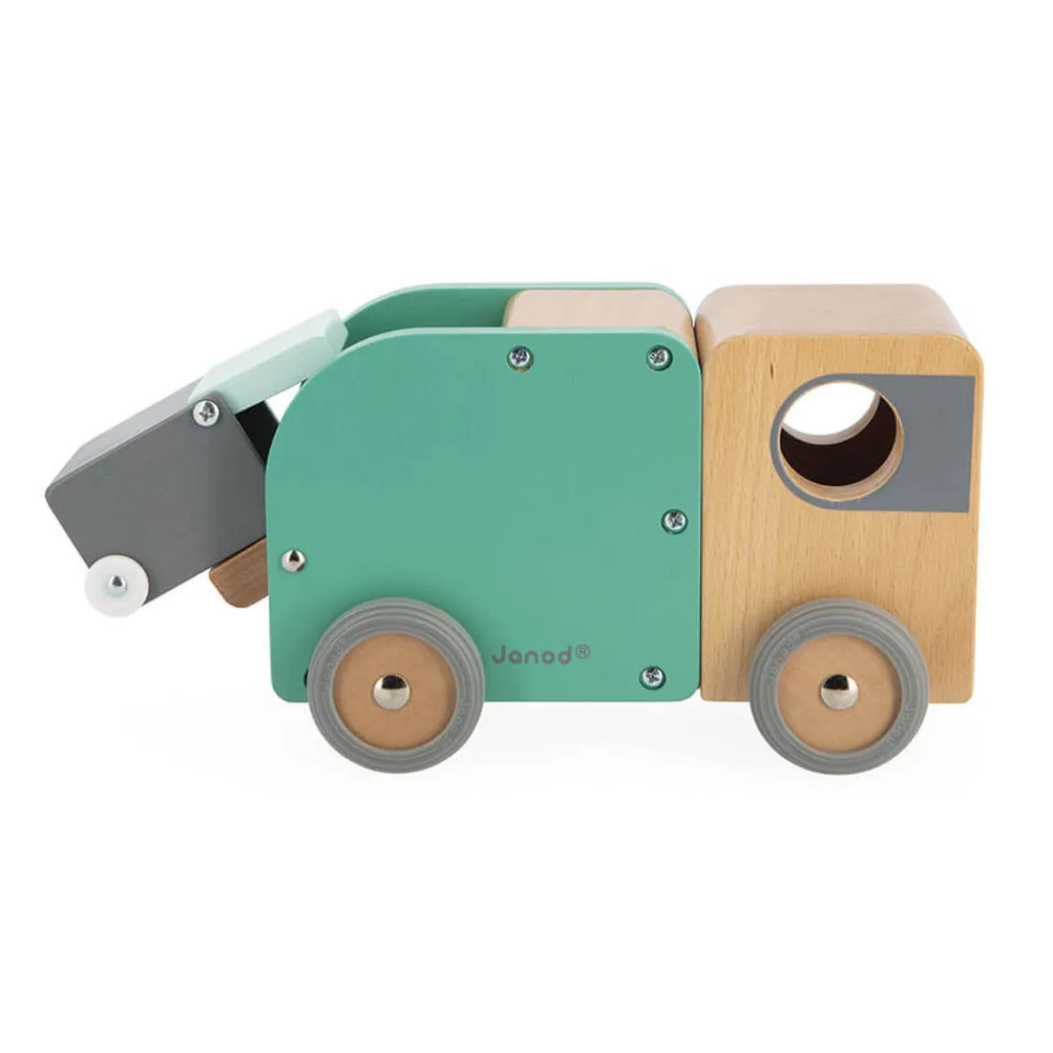 It’s bin collection day, did you remember to put yours out? This beautiful solid wood refuse truck will help educate your child about ecology and recycling. For more realism, this green, grey and wood truck comes with a magnetic dustbin that tilts to be emptied at the back of the truck! Your little ones, from 2 years old, will be able to invent their own stories while developing their fine motor skills. Its dimensions of 21.8cm long and 11.8cm high and its silent rubber wheels make it a toy suitable for small hands. This toy is made of FSC®-certified wood and painted with water-based paint.