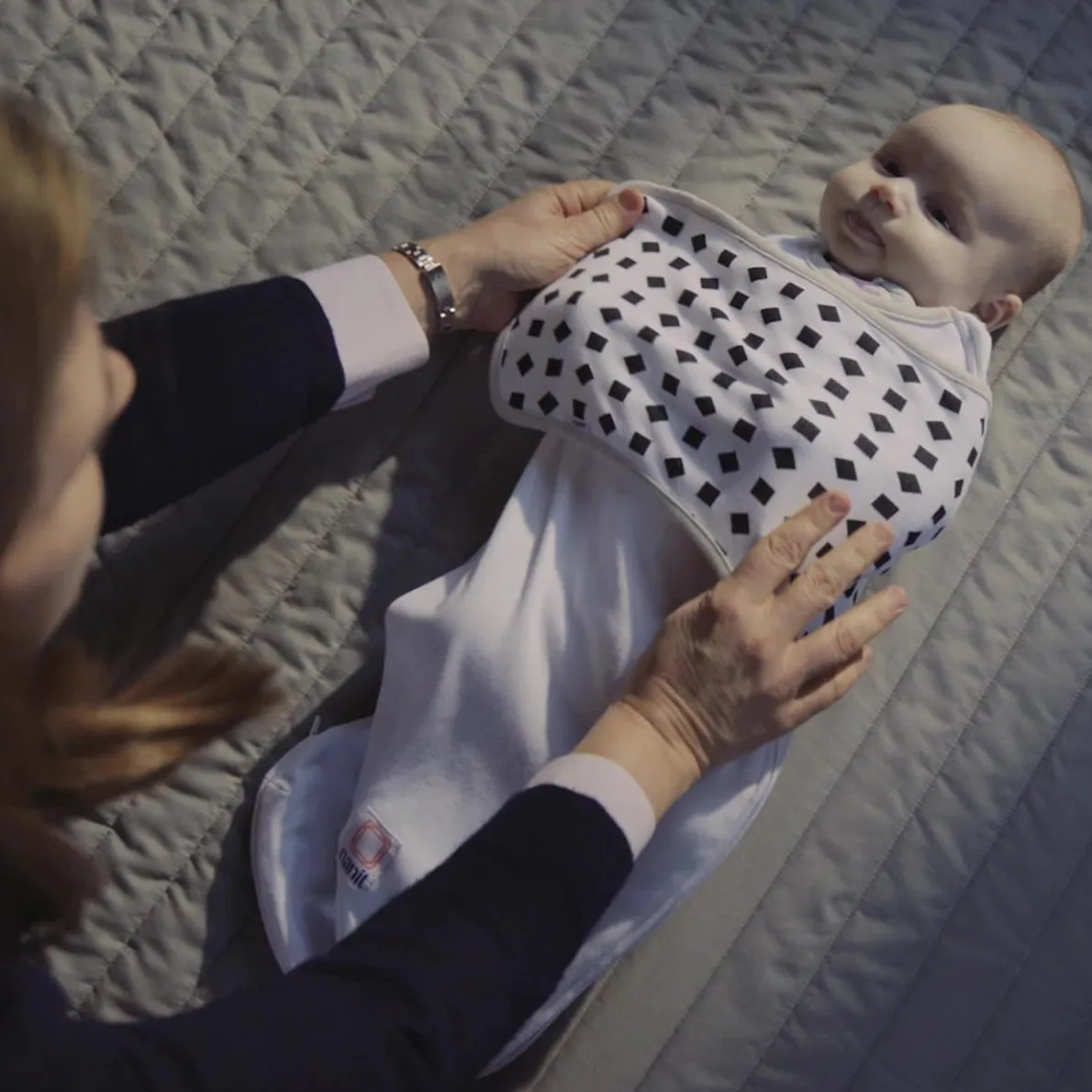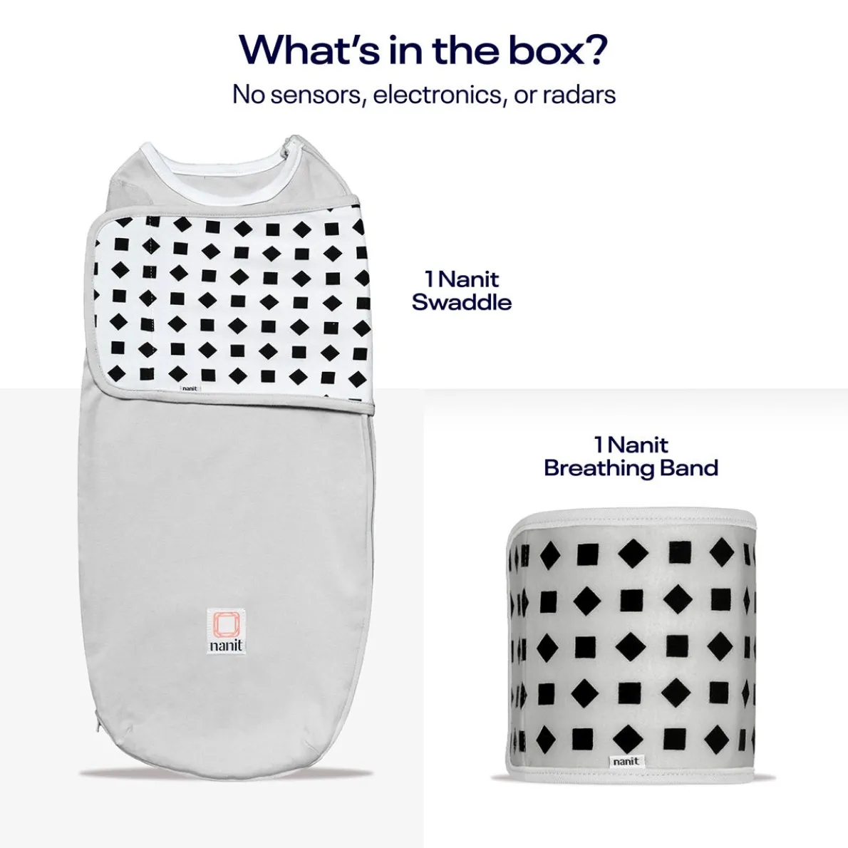 The Breathing Wear™ Starter Pack works exclusively with the Nanit Plus nursery camera, to monitor your baby’s breathing motion without putting sensors on your baby. The specific patterns on the fabric were custom-designed to be read by the HD Nanit camera, making it easy to check in on your little one, from your Nanit app. The Breathing Wear™ Starter Pack is the best way to get started with Nanit Breathing Wear. This Starter Pack includes one small Breathing Band, and one small Nanit Swaddle.