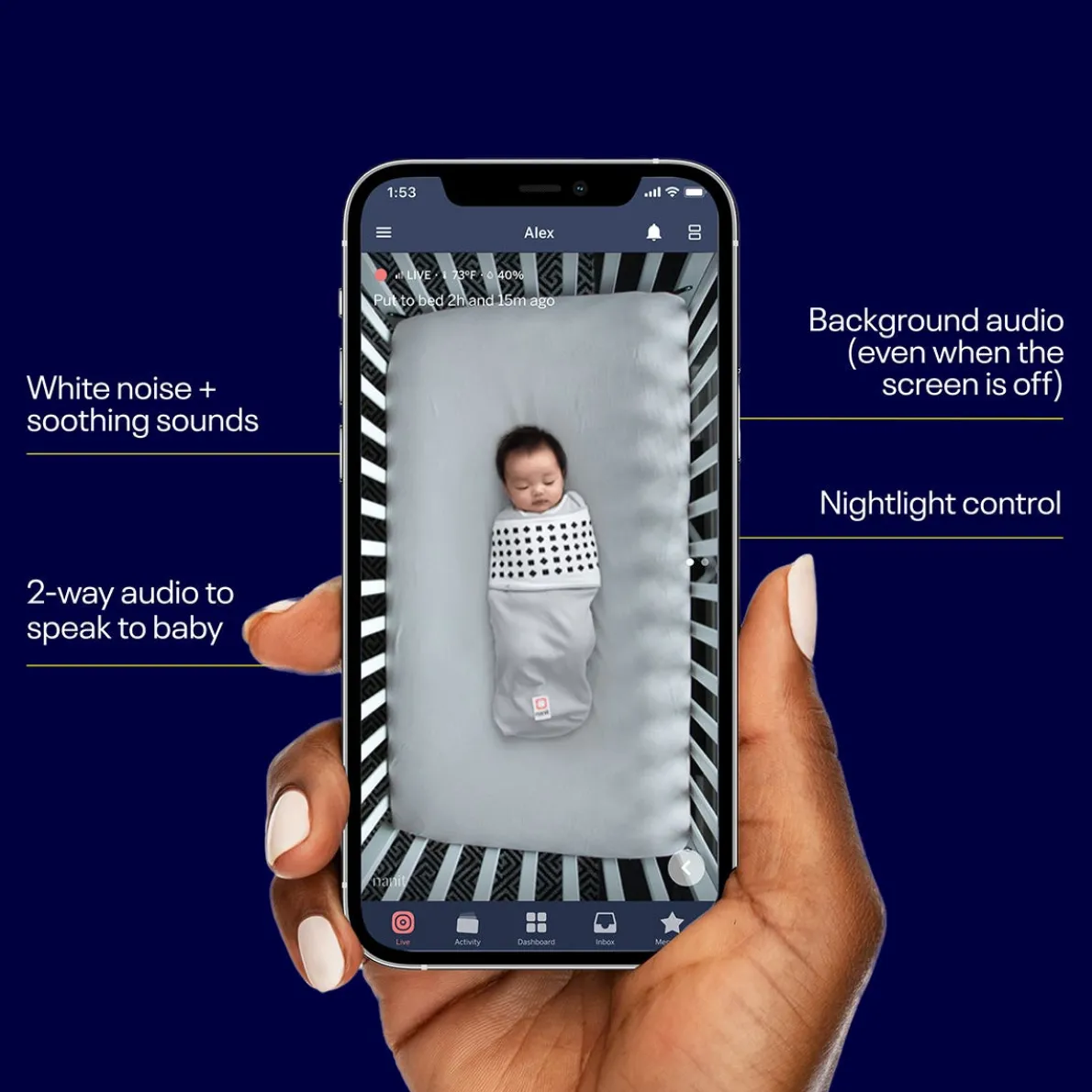 - Peaceful sleep at your fingertips: Feel more confident when leaving your baby in the crib each night, so you can get some sleep yourself. With Breathing Wear, the Nanit Plus camera tracks your baby’s breathing motion, and lets you know when they need you.