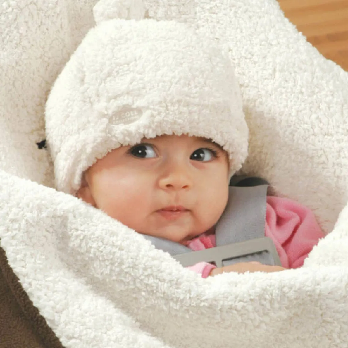 This adorable hat, mitten and booties set is made from the same plush inner faux shearling and outer thermaplush™ fabric as the JJ Cole original Bundleme. The hat also has stretch polyester lining to grow with your child.