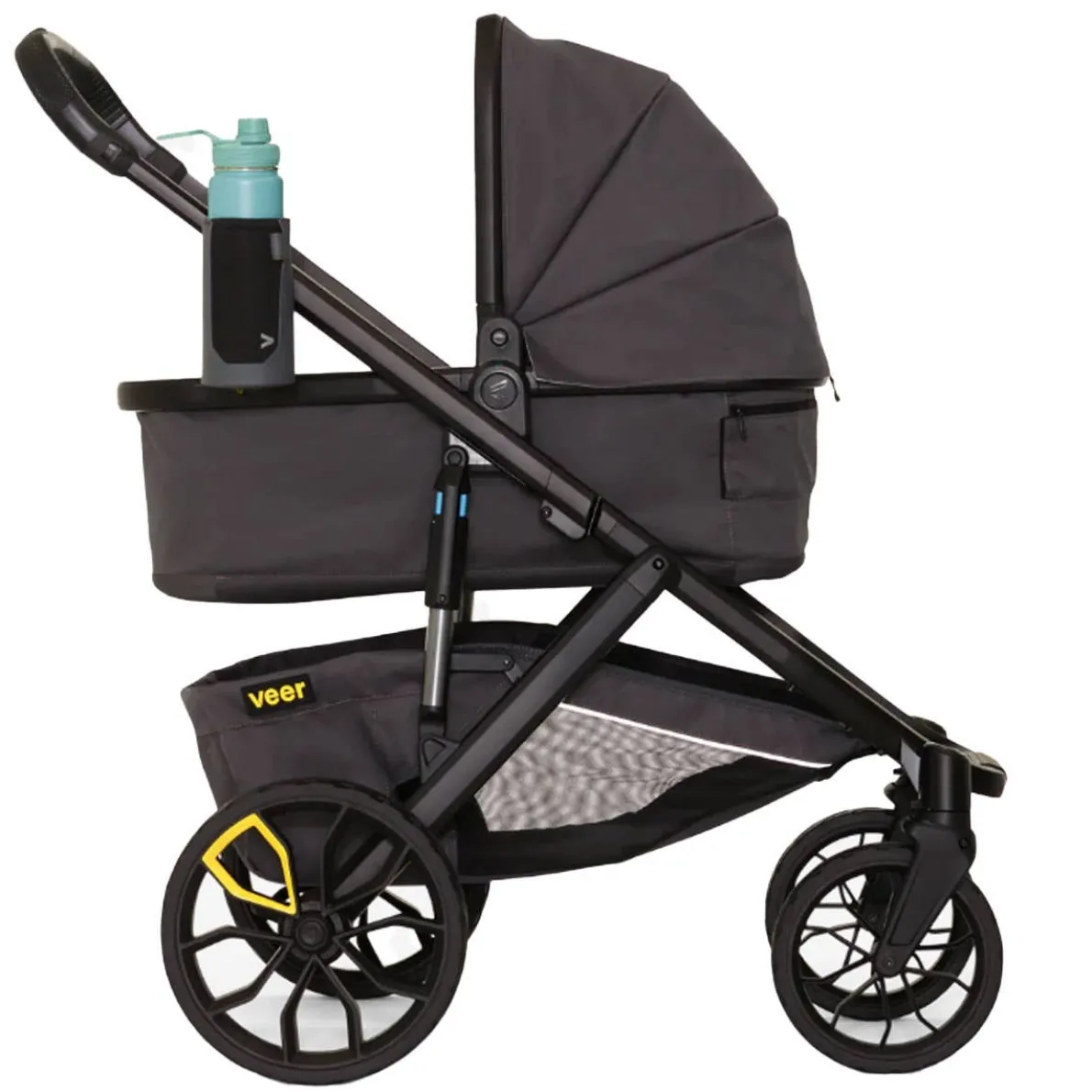Keep your phone, keys, water bottle all within reach. The Catch All and Catch All XL can be secured to anyVeer Cruiser, &Roll, and &Jog at any of the fixed attachment points. Additionally, the bottom of a Catch All’s can be secured to a handle with an elastic loop to prevent swinging if desired. The product is constructed of durable tarpaulin and a neoprene-like material that give it water-resistant and insulating properties.