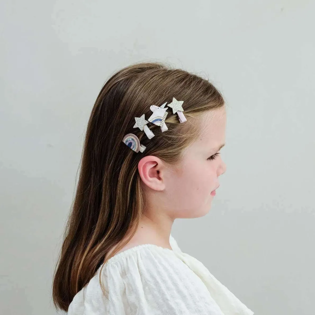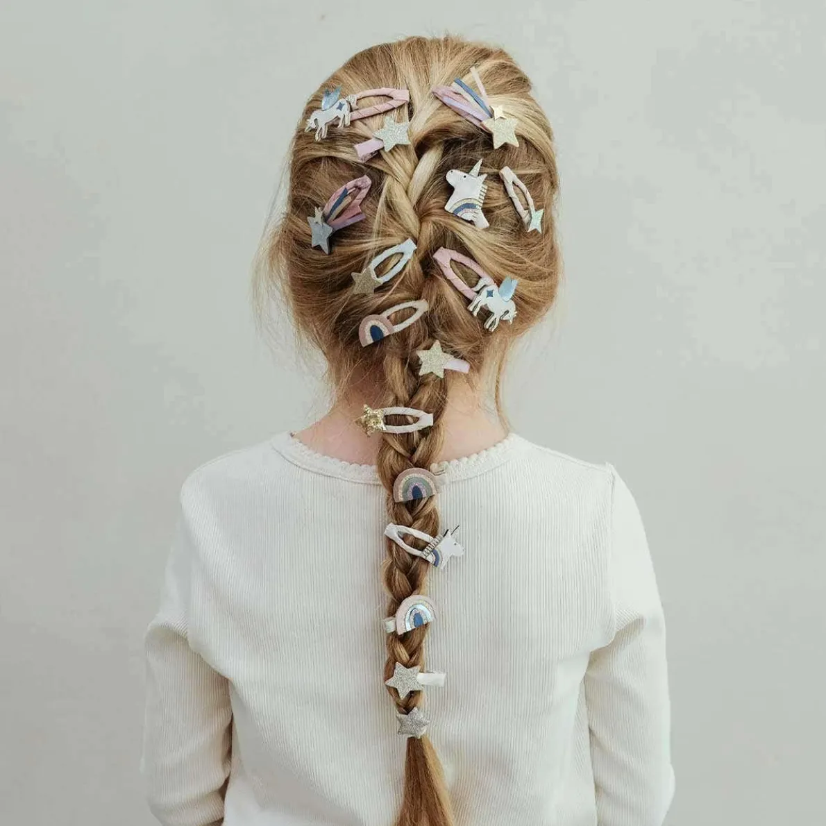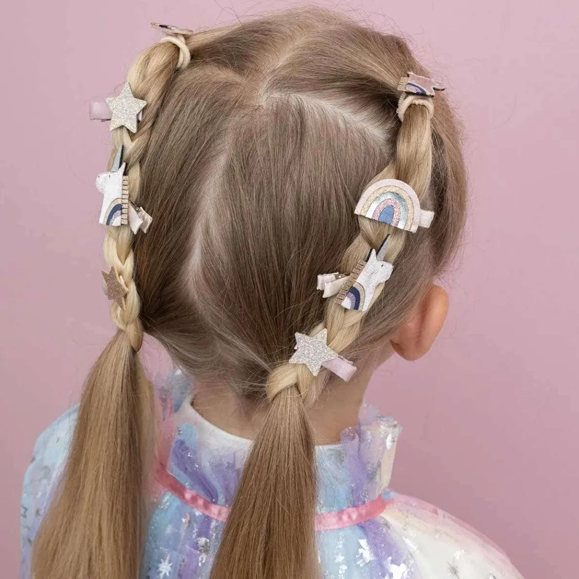 Add some mythical magic to their hair with Celeste unicorn mini hair clips! Super soft unicorns, rainbows and stars come together in the prettiest palette of pinks and pastels for a look they’ll love!
