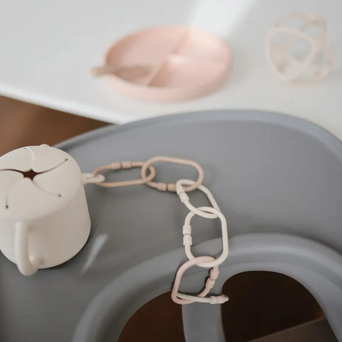 Keep toys within reach while engaging littles in a playful learning experience with mushie chain link rings. These durable, yet flexible plastic links can quickly attach toys to strollers and car seats, ensuring that favorite companions are always close by. Each set features three soft colors to help engage little ones and improve sorting skills. The minimal design and smooth, lightweight non-toxic material makes it easy for small hands to grasp and manipulate, enhancing fine motor skills.