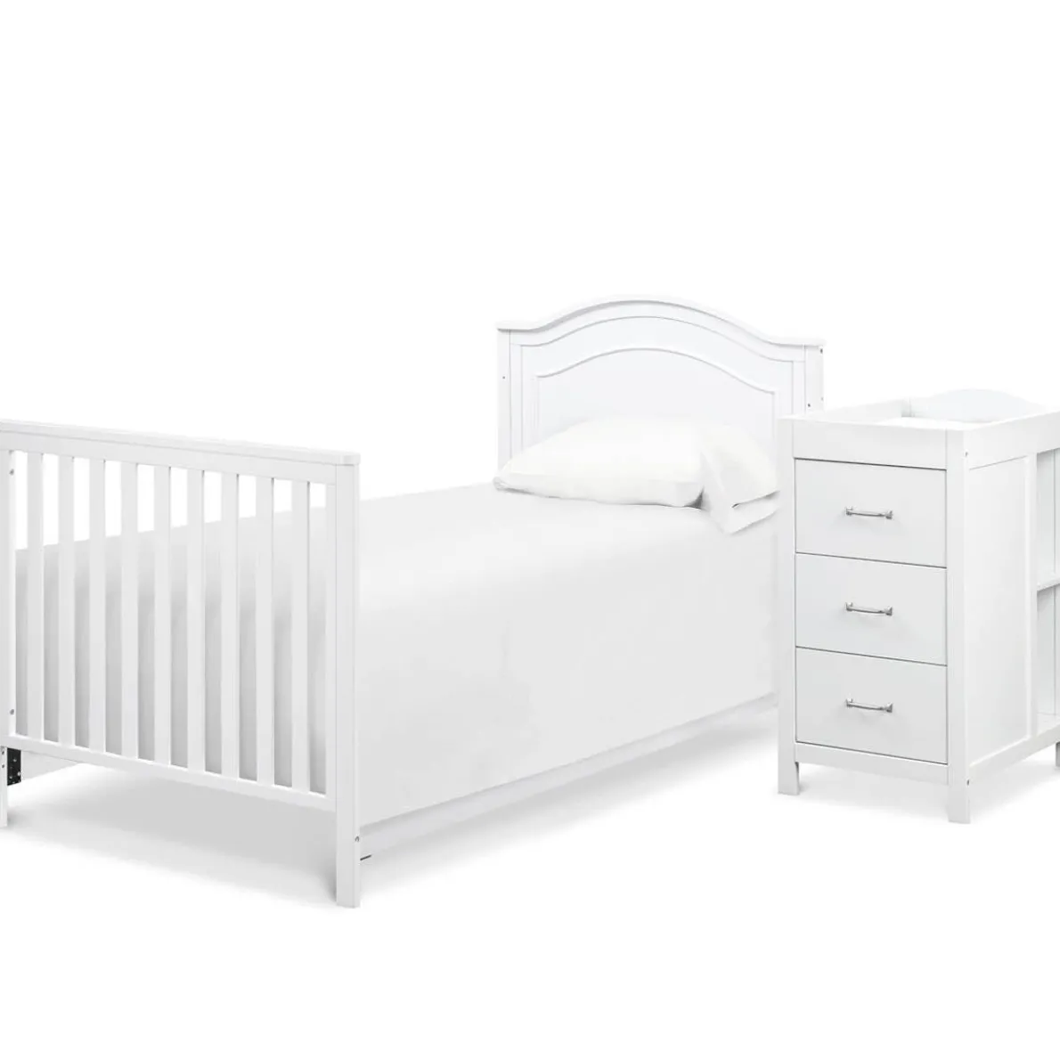The Charlie 4-in-1 Convertible Mini Crib & Changer is a beautiful, comprehensive solution for any stylish nursery. Its compact size helps maximize smaller spaces, so that your baby has more room to play and grow! Beyond the nursery years, this crib converts to a mini toddler bed, day bed, and twin-size bed with detached nightstand.