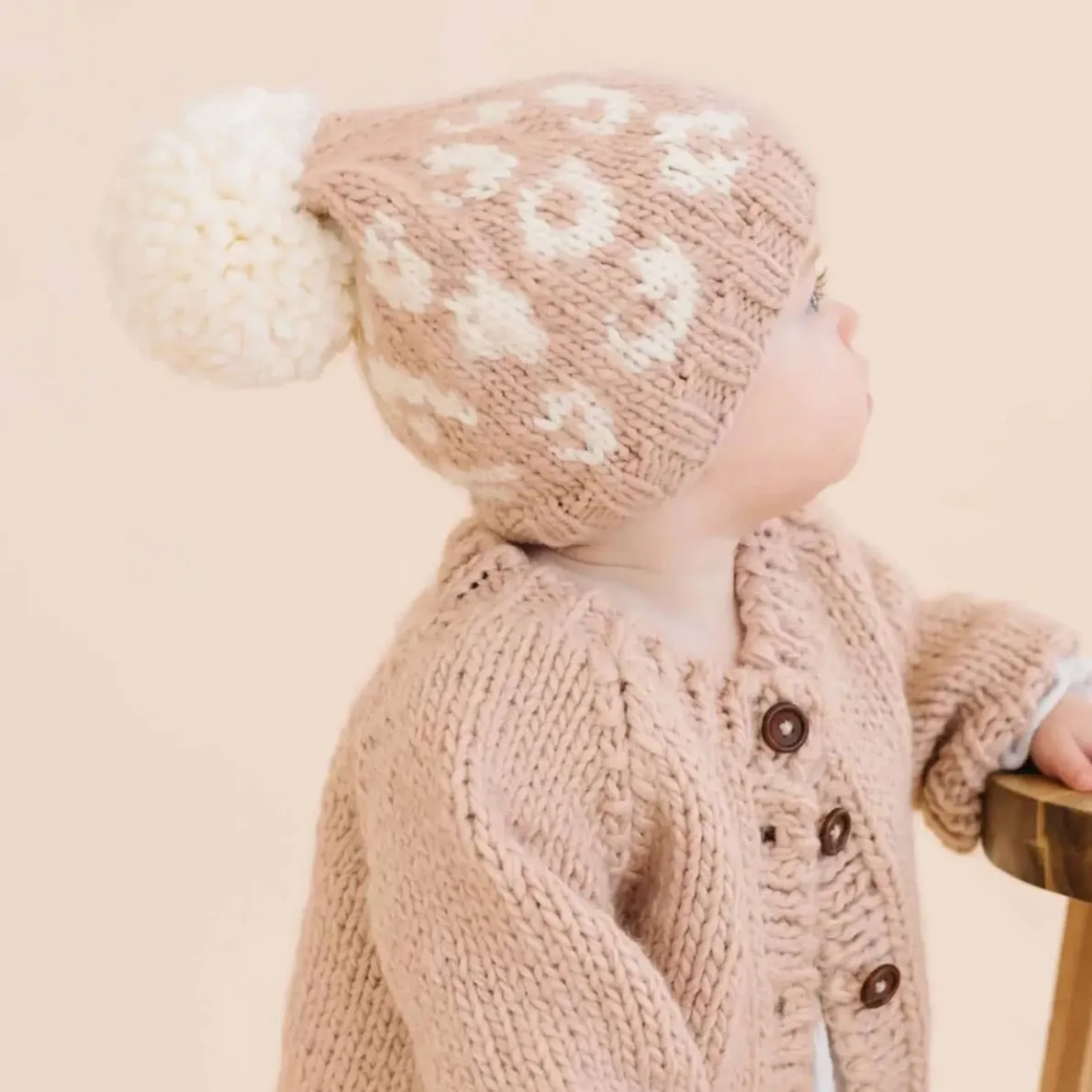 A fun cheetah print with a faux fur pom and latte spots for your sweetly fashionable little ones. Also available in Blush and latte.