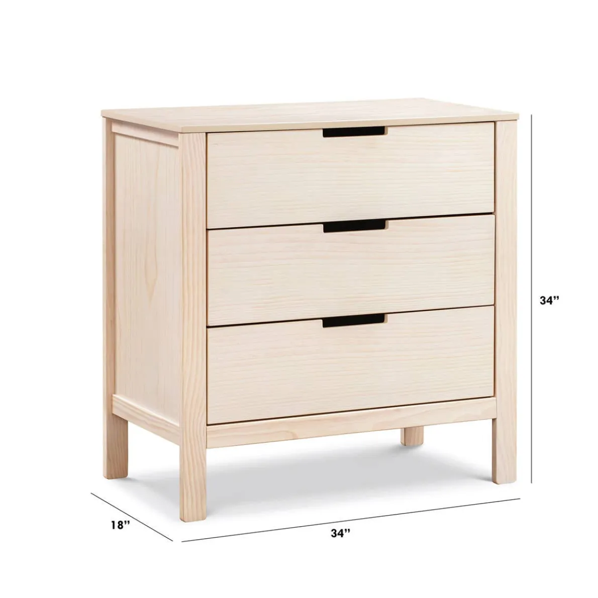 The Carter’s Colby 3-Drawer Dresser features three spacious drawers with open finger pulls and a streamlined, modern look. Coordinates with the Carter’s Colby Crib and Colby 6-Drawer Dresser.