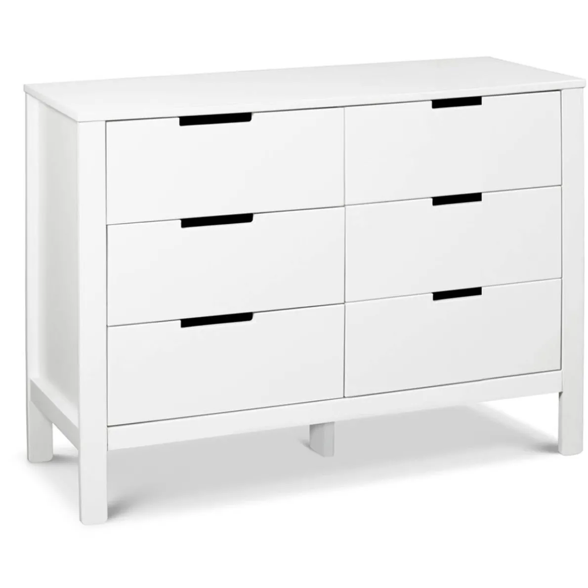 The Carter’s Colby 6-Drawer Dresser features six spacious drawers with open finger pulls and a streamlined, modern look. Coordinates with the Carter’s Colby Crib and Colby 3-Drawer Dresser.