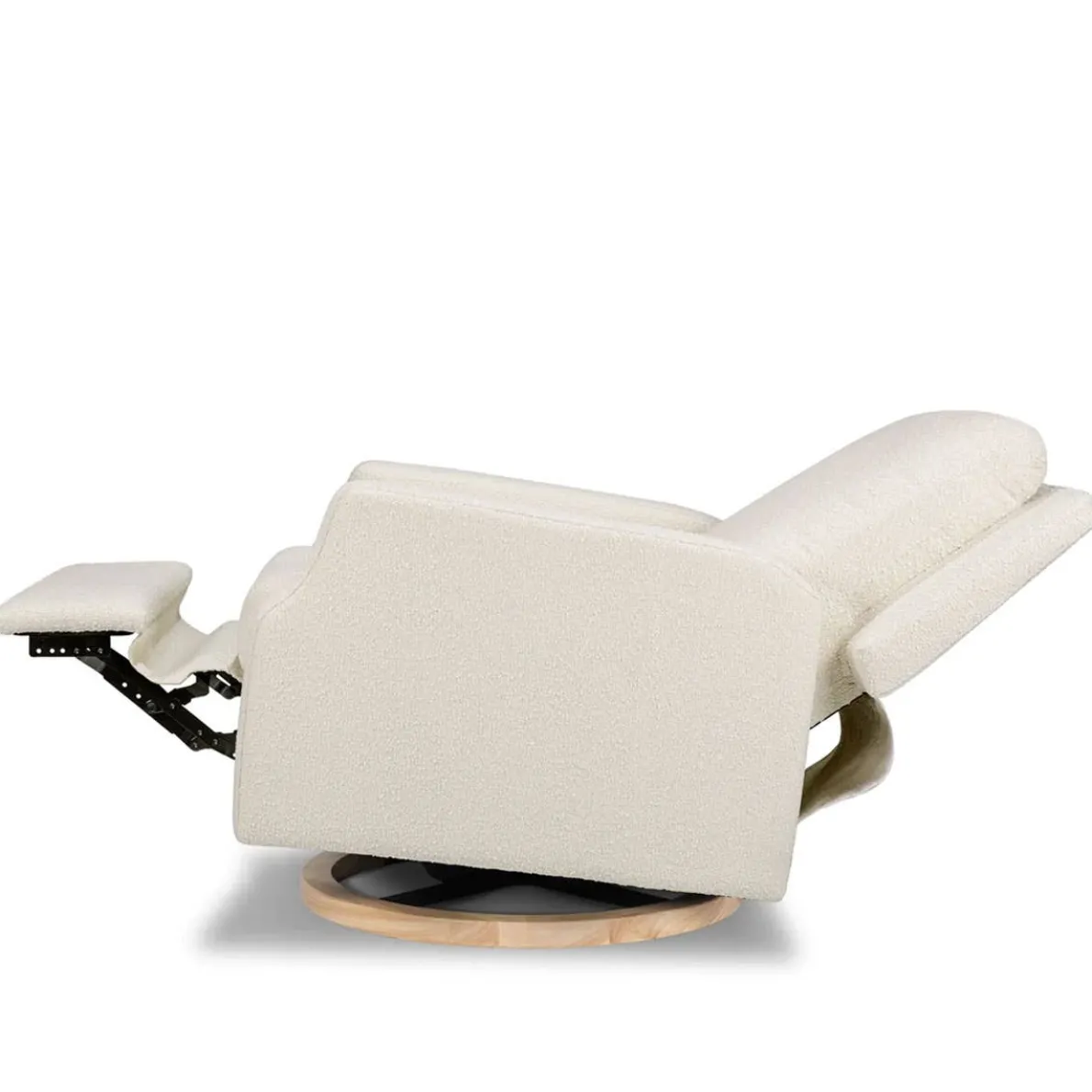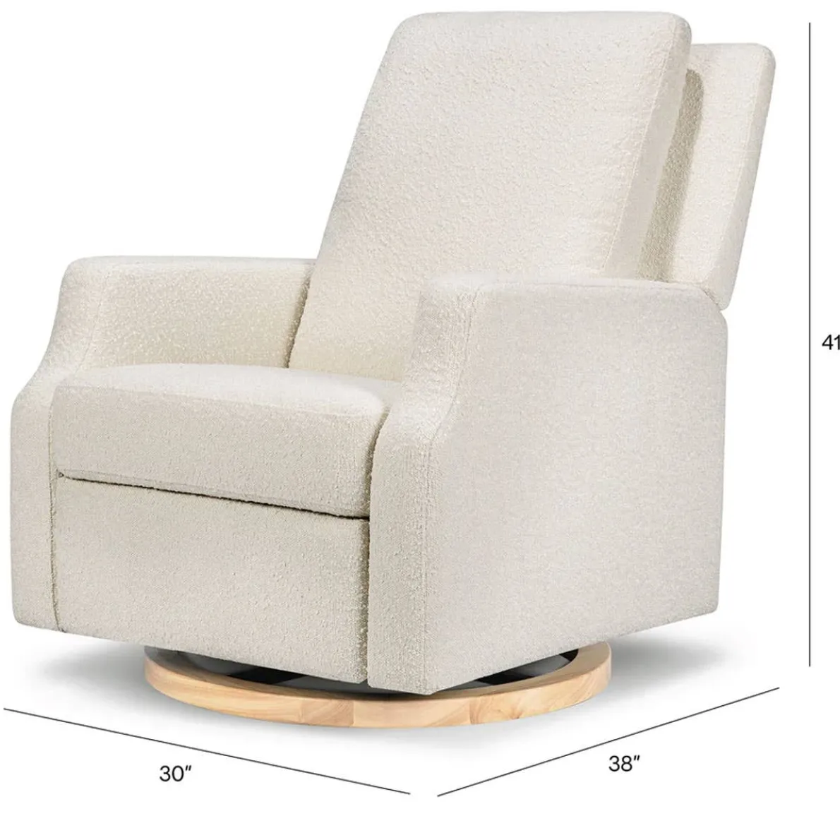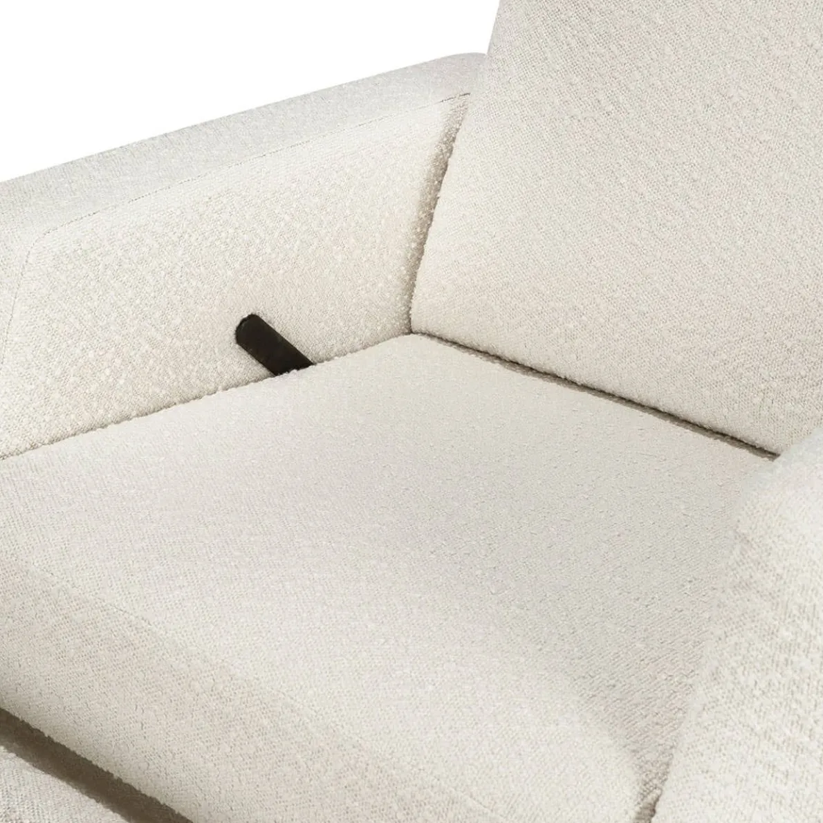 The Crewe Recliner blends form and function with its crisp, contemporary design and comfortable seat. Its smooth, back-and-forth gliding motion helps you rock your baby to sleep with ease, while the plush back cushion, hidden recline mechanism, and convenient swivel create an inviting repose for both you and your baby.