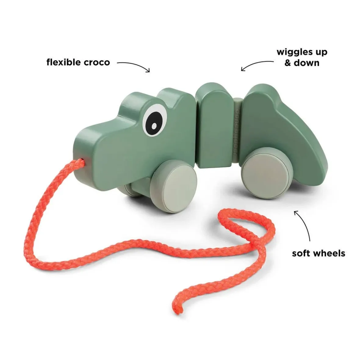 Discover the Done by Deer Pull Along Wiggle Toy Croco perfect for children 12 months and up! Croco’s body has soft wheels and a wobbling body. The Done by Deer Pull Along Wiggle Toy Croco motivates your little one to walk and play imaginatively.