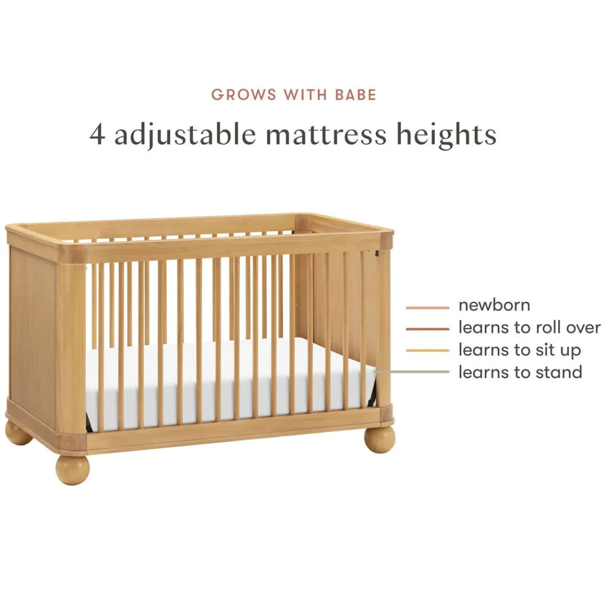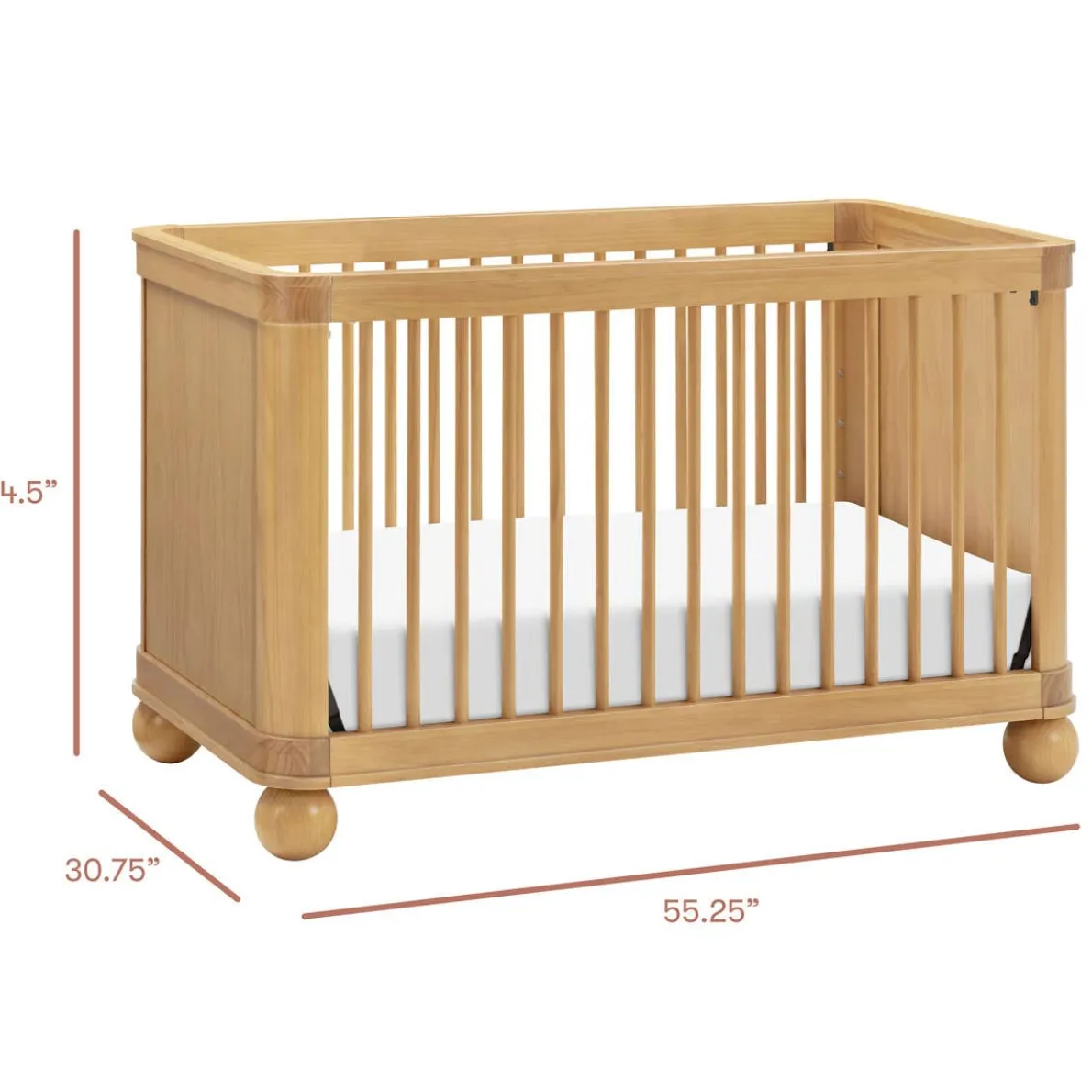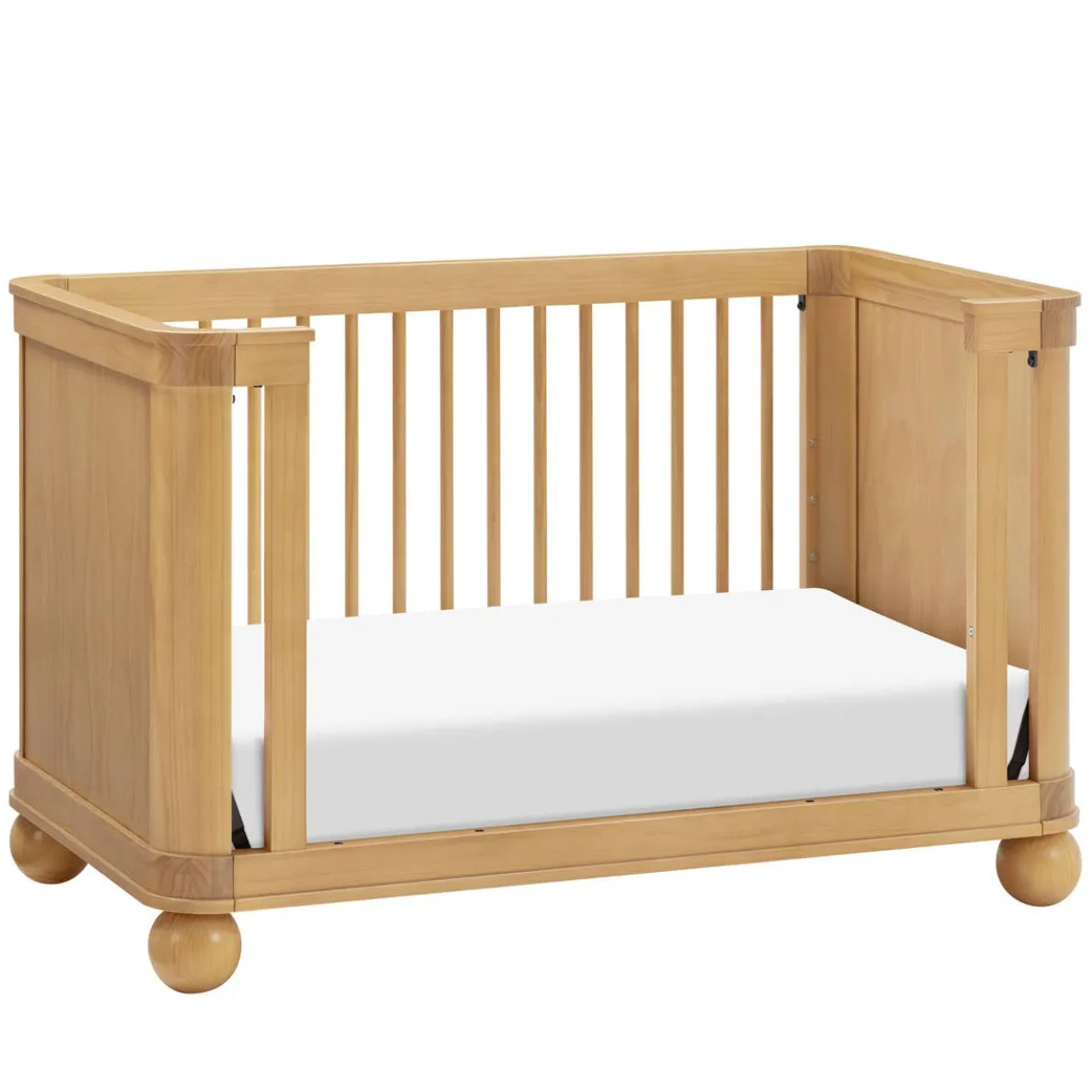 Blending classic design with contemporary elements, the Crosby 3-in-1 Convertible Crib provides both style and function to your home and nursery. With its gently curved silhouette and whimsical rounded ball feet, this crib is crafted with quality, sustainable materials and certified GREENGUARD Gold with your child’s safety in mind. Designed to grow as they grow, the Crosby is able to convert from standard crib to a toddler bed and daybed to best fit your needs for years to come.