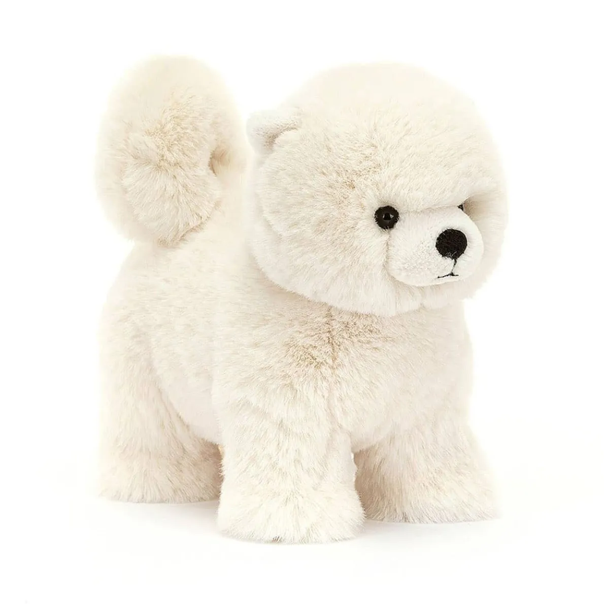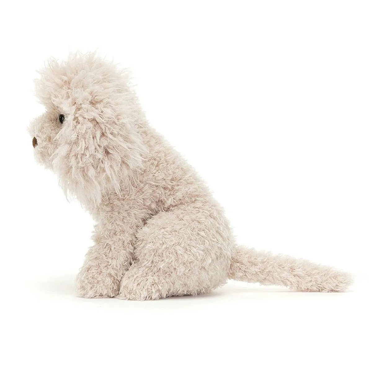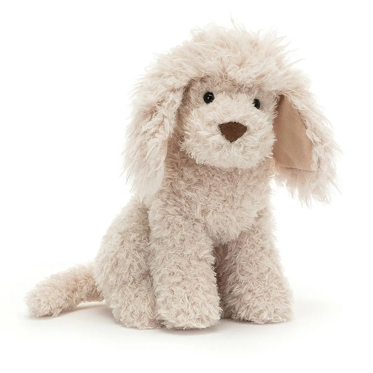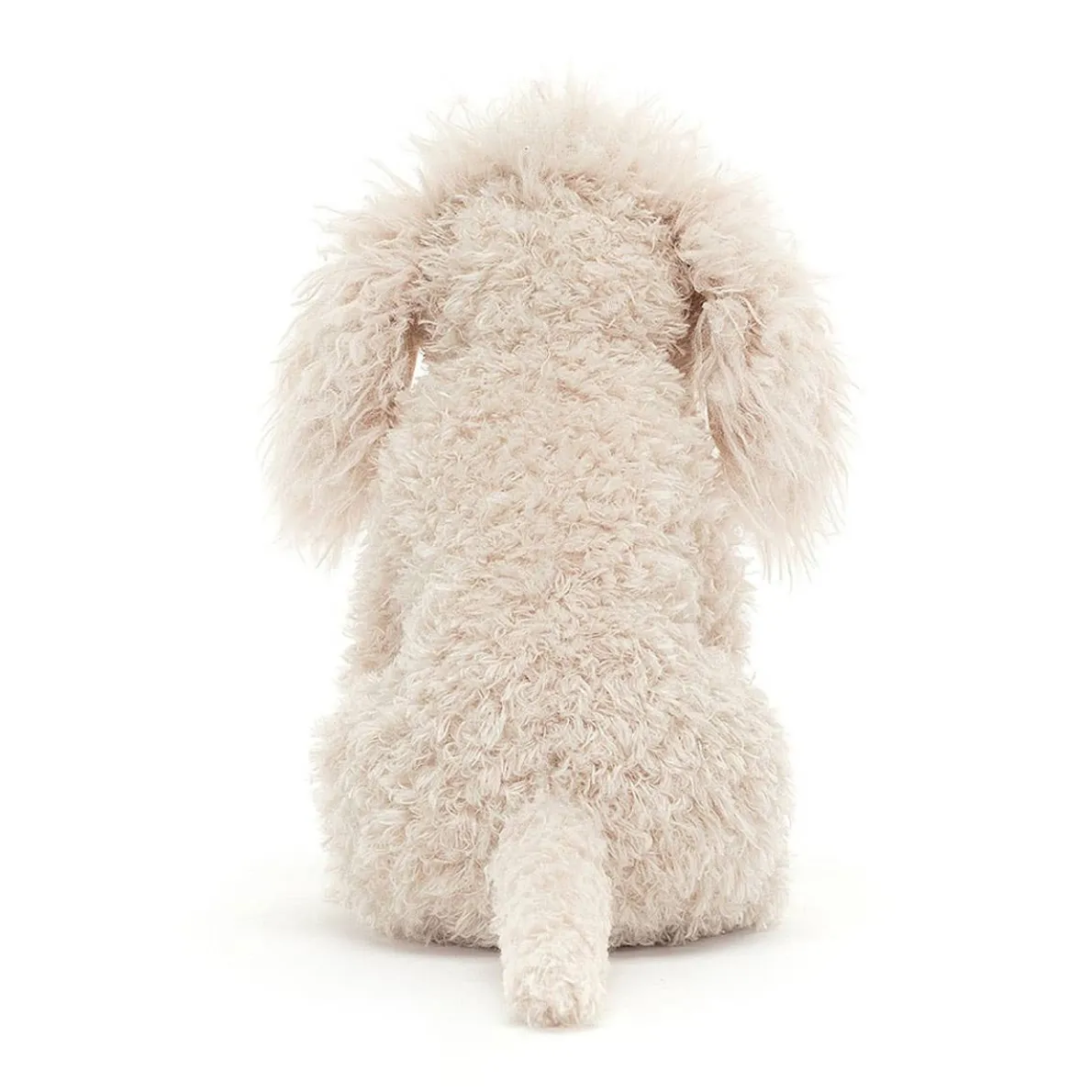 Georgiana Poodle has the prettiest fur in delicate tufts of champagne. Sitting sweetly, this curious friend is listening keenly with long scruffed ears. Ready to jump up on fluffy haunches and wag her bonny curved tail, Georgiana’s ready for the next adventure.