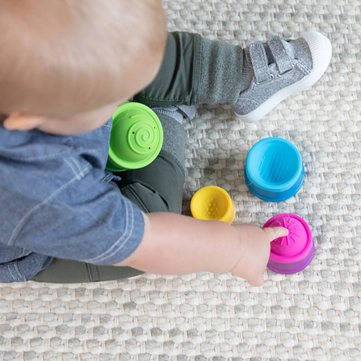 The top of each cup features a squishy silicone bubble embossed with a unique texture pattern. Little fingers will love to touch, push, and pop them again and again.