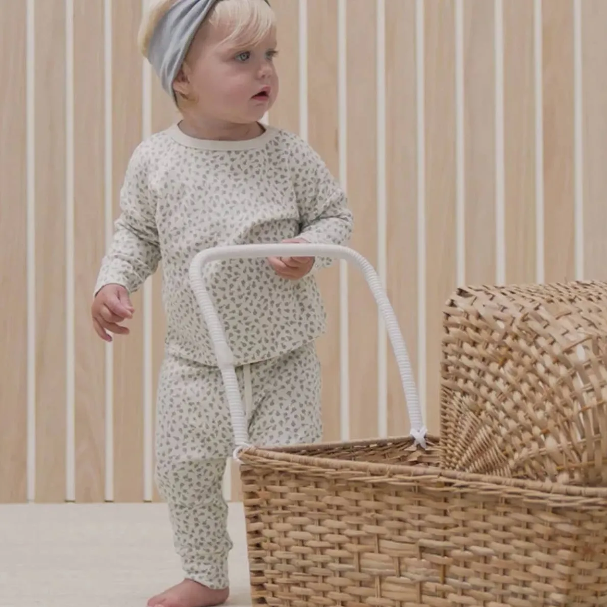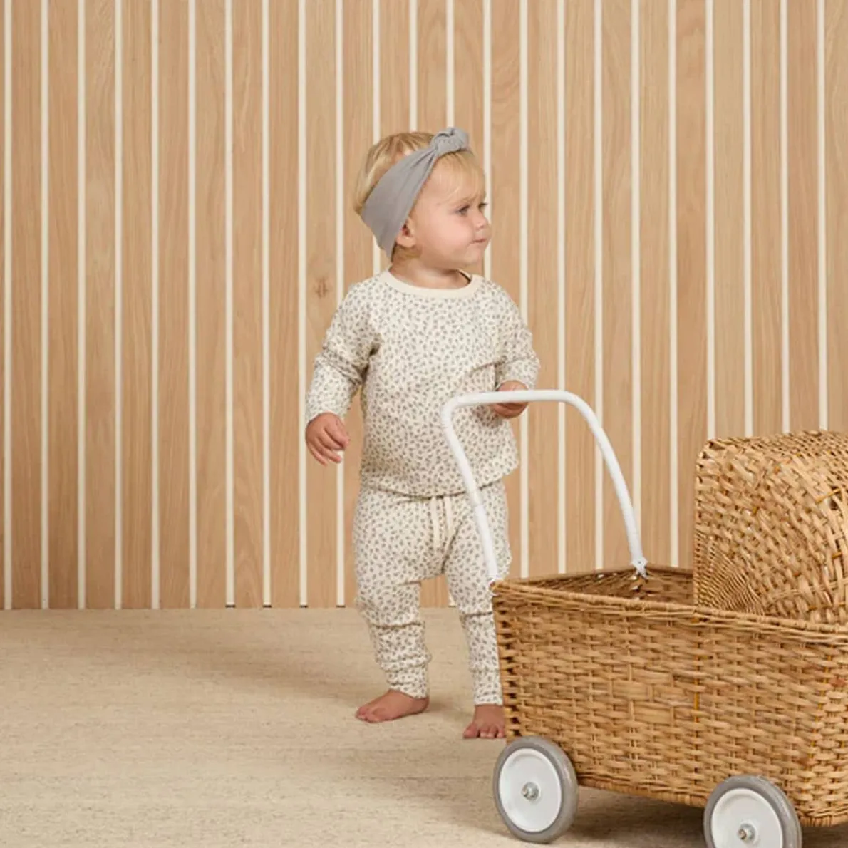 Drawstring pants with an elastic waistband made out of velvety soft organic brushed fabric.