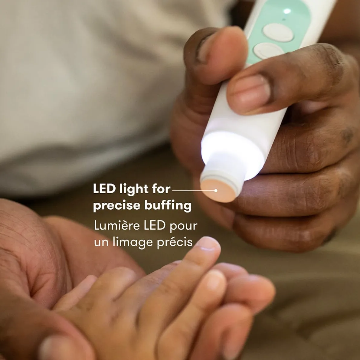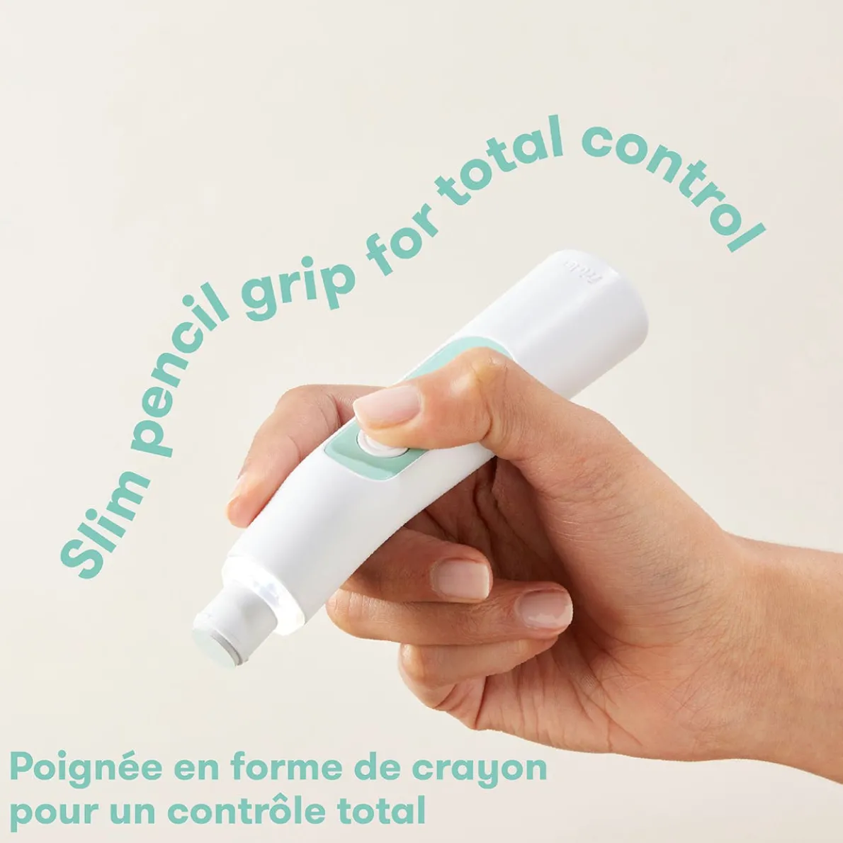 Scared of a snip slip? Nix your nail-care nerves and take total trimming control with the Electric Nail Buffer. It safely buffs and shapes tiny nails and cuticles, so you can keep up with your baby’s non-stop nail growth. Easily change speed and direction as you go, and switch the grit as needed with four interchangeable buffer pads for newborn nails to coarser toddler claws. An always-on LED task light eliminates shadows for more focus and precision, day or night. Once you’ve nailed their mani/pedi, store everything in the secure case with your go-to pad in place, so you can grab and buff with one hand when the next snag strikes.
