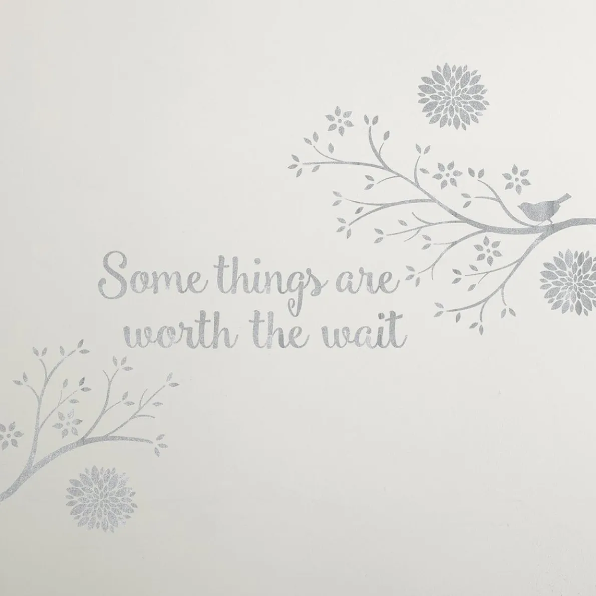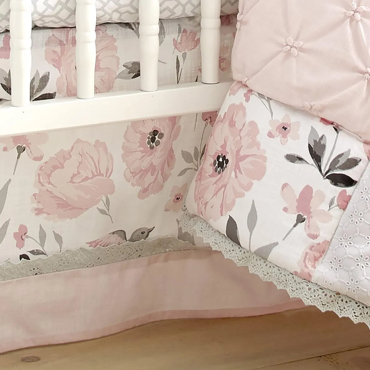 This cute collection includes a quilt, diaper stacker, fitted crib sheet, dust ruffle and wall decals to help set up your baby’s room.