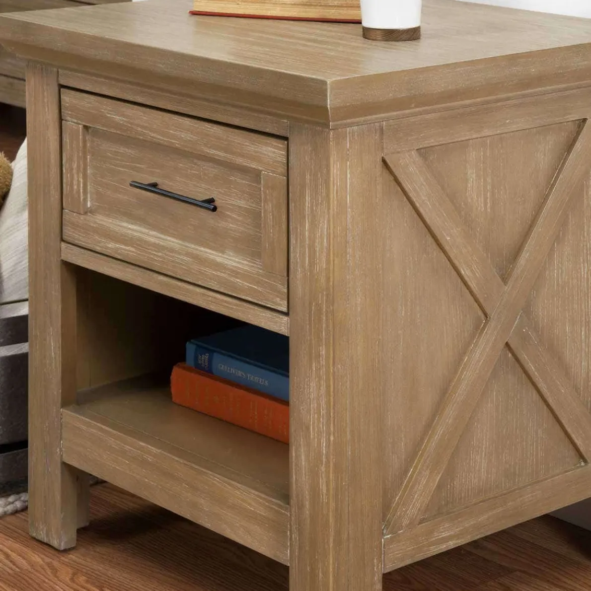 The Emory Farmhouse Nightstand is the perfect accent piece to complete your rustic nursery look.