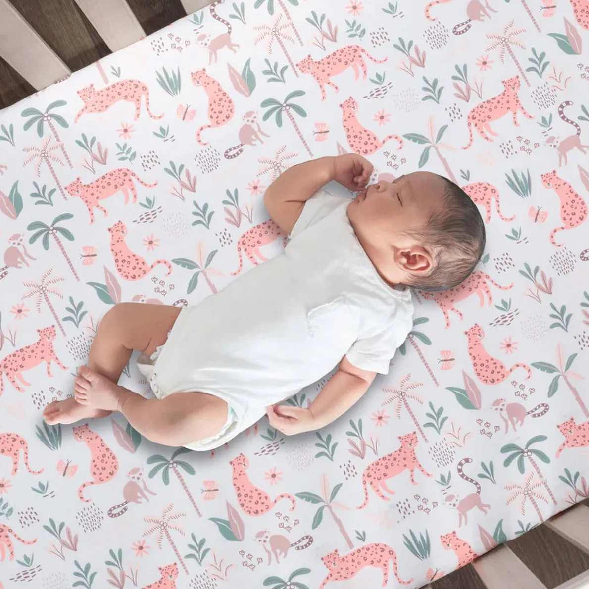 - Breathable 100% cotton fitted crib sheet with elastic all the way around ensuring a safe and secure fit on a standard size crib mattress