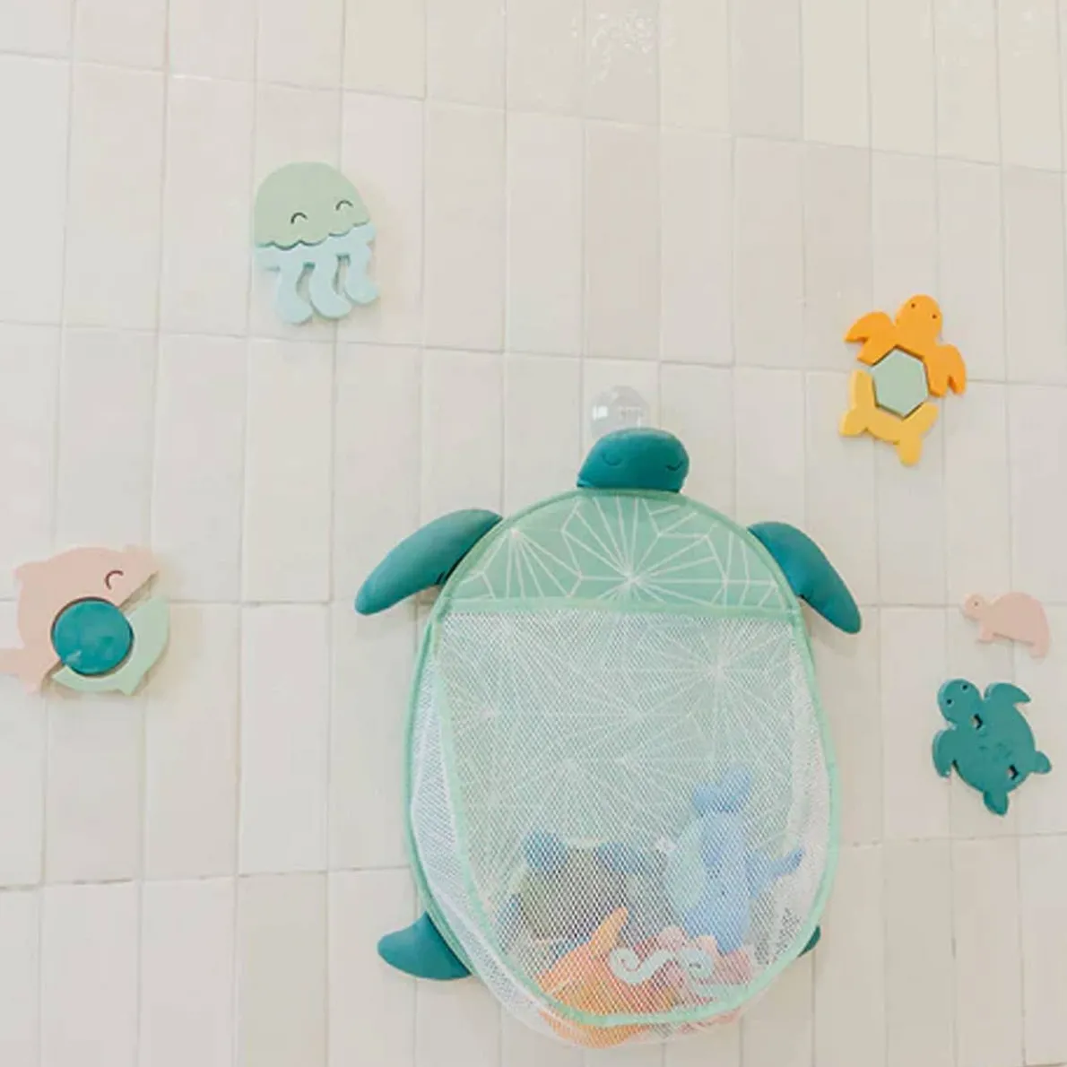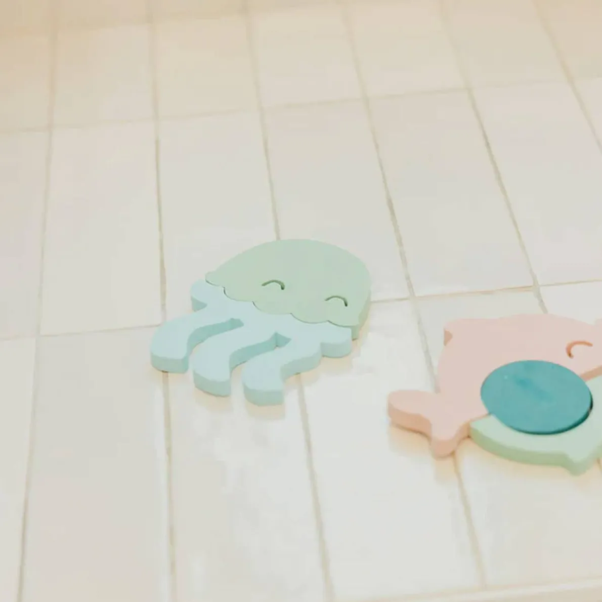 Your little one will love playing with these fun foam characters. From the water to the wall, they float in the tub or stick to smooth surfaces when wet. The puzzle pieces help your child learn as they play, developing hand-eye coordination and problem solving skills. Complete the look with our Bath Toy Organizer for quick clean-up and easy storage (sold separately).