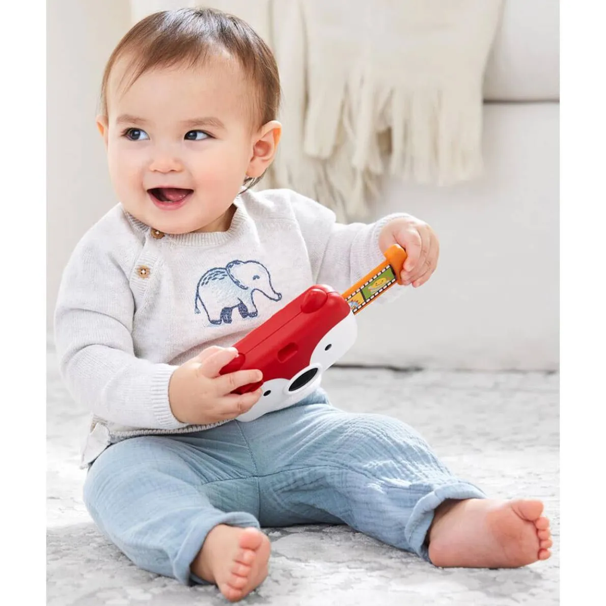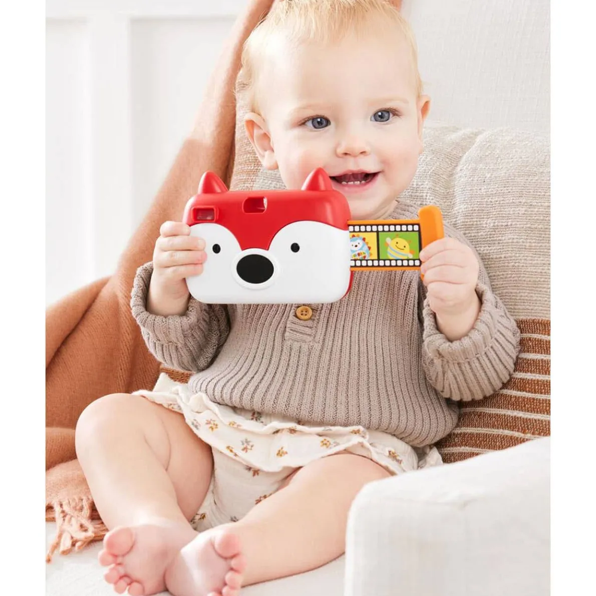 One, two, three…say “cheese!” Our friendly fox camera is loaded with fun “film,” realistic shutter sounds, flash bulb lights, a baby mirror and more awesome features little shutter bugs will love! Just press the fox’s ear to get the photo shoot rolling!
