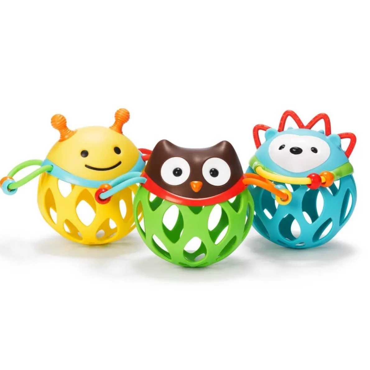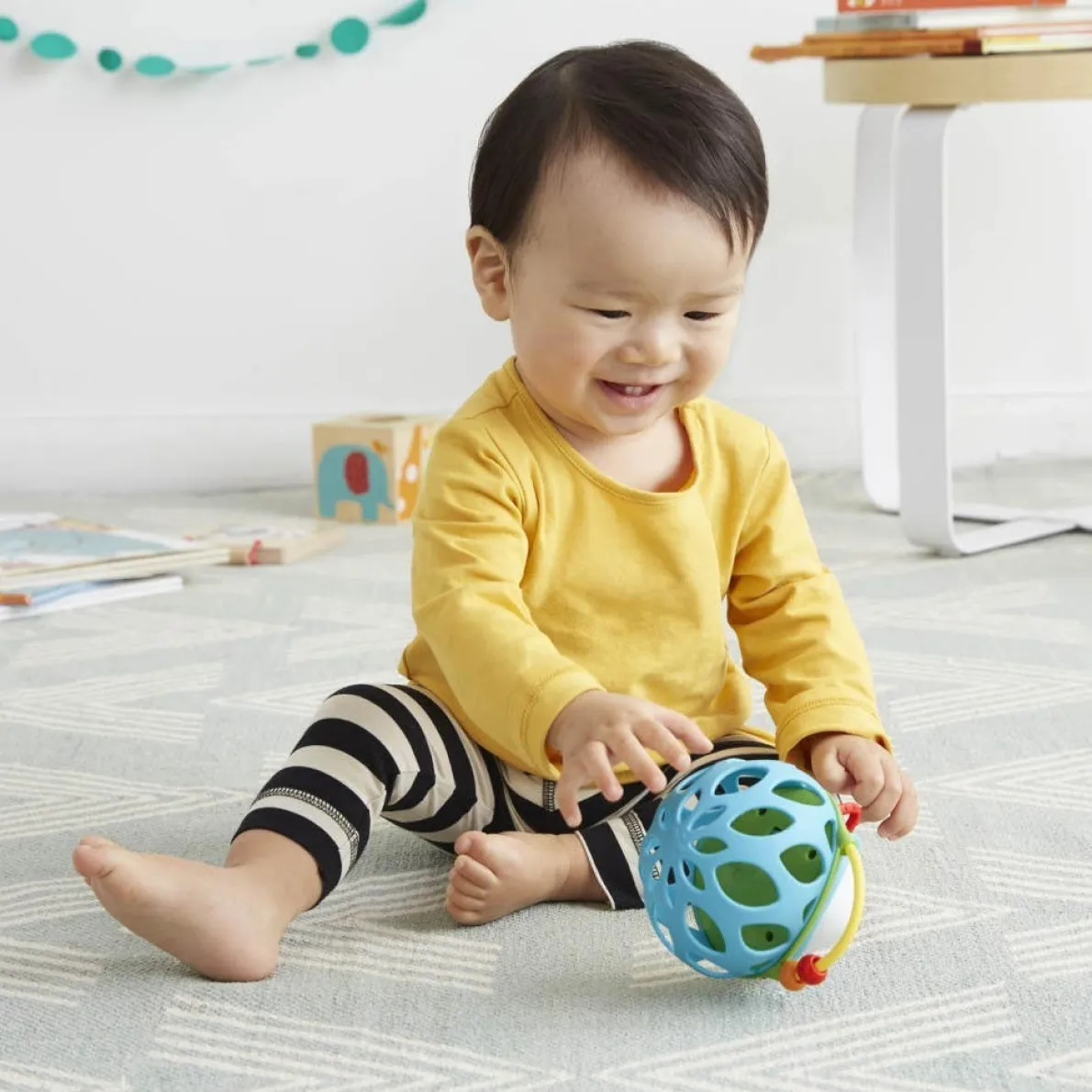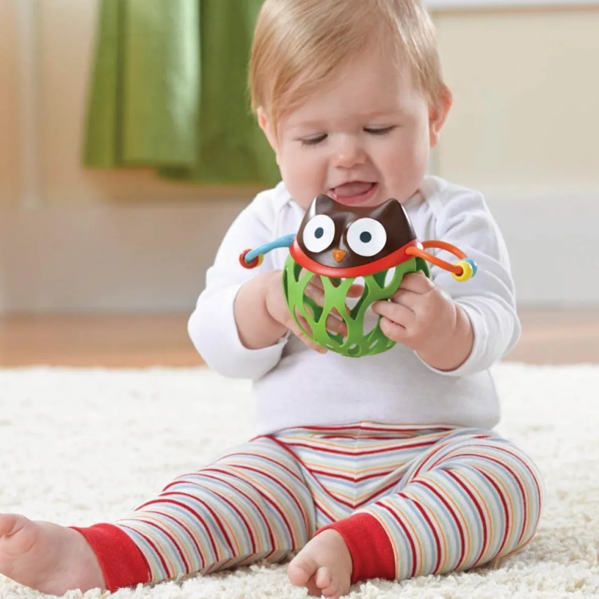 This familiar face engages baby in developmental play. The flexible body has easy-to-grasp openings that help little hands build dexterity. The rattle encourages rolling, shaking and tossing, while teethers and beads offer more to touch and explore.