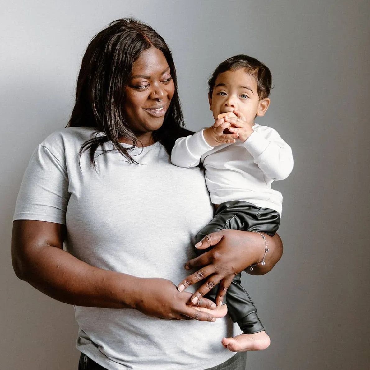 The legging style faux leather is a tighter fit. Pair the legging style with our custom printed Mauve Crewneck for a girls outfit.