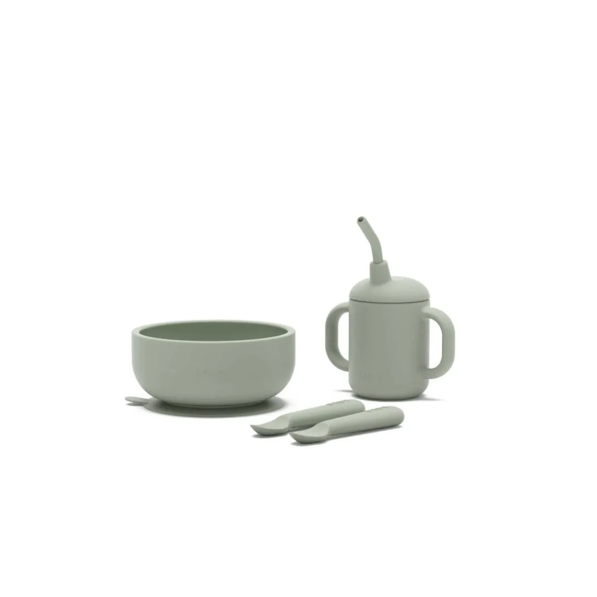 The First Bites Starter Kit comes with a Suction Bowl, Little Cup and Little Spoon (2-pack), for everything you need for a solid start to solids. Even better, everything is dishwasher safe!