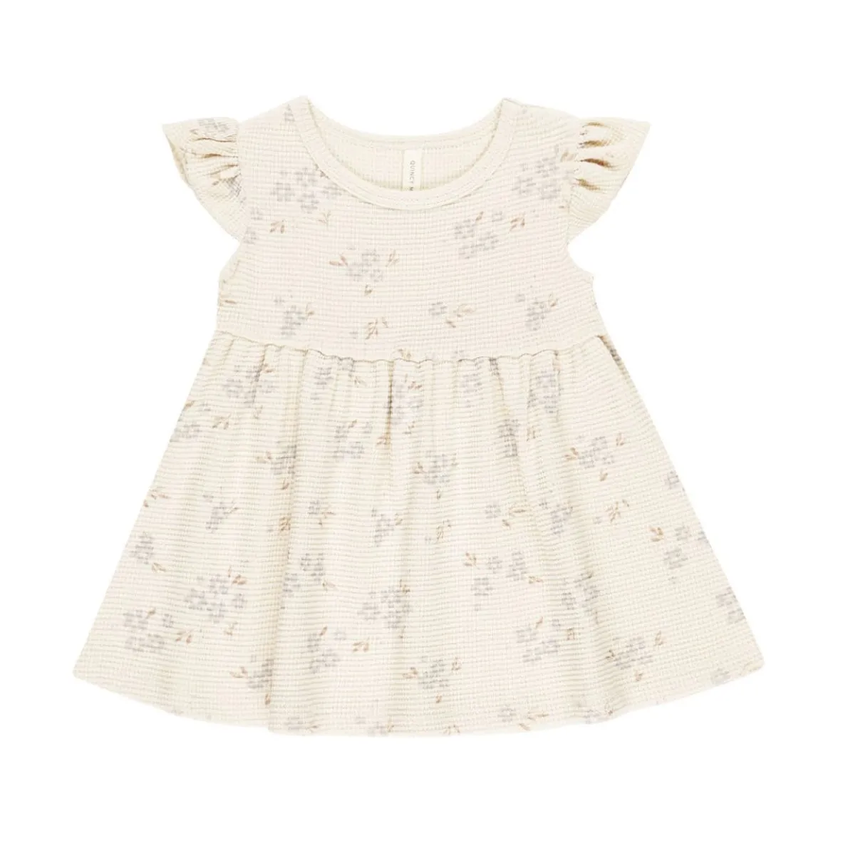 This waffle style features flutter sleeve detail and a full skirt perfect for twirling.