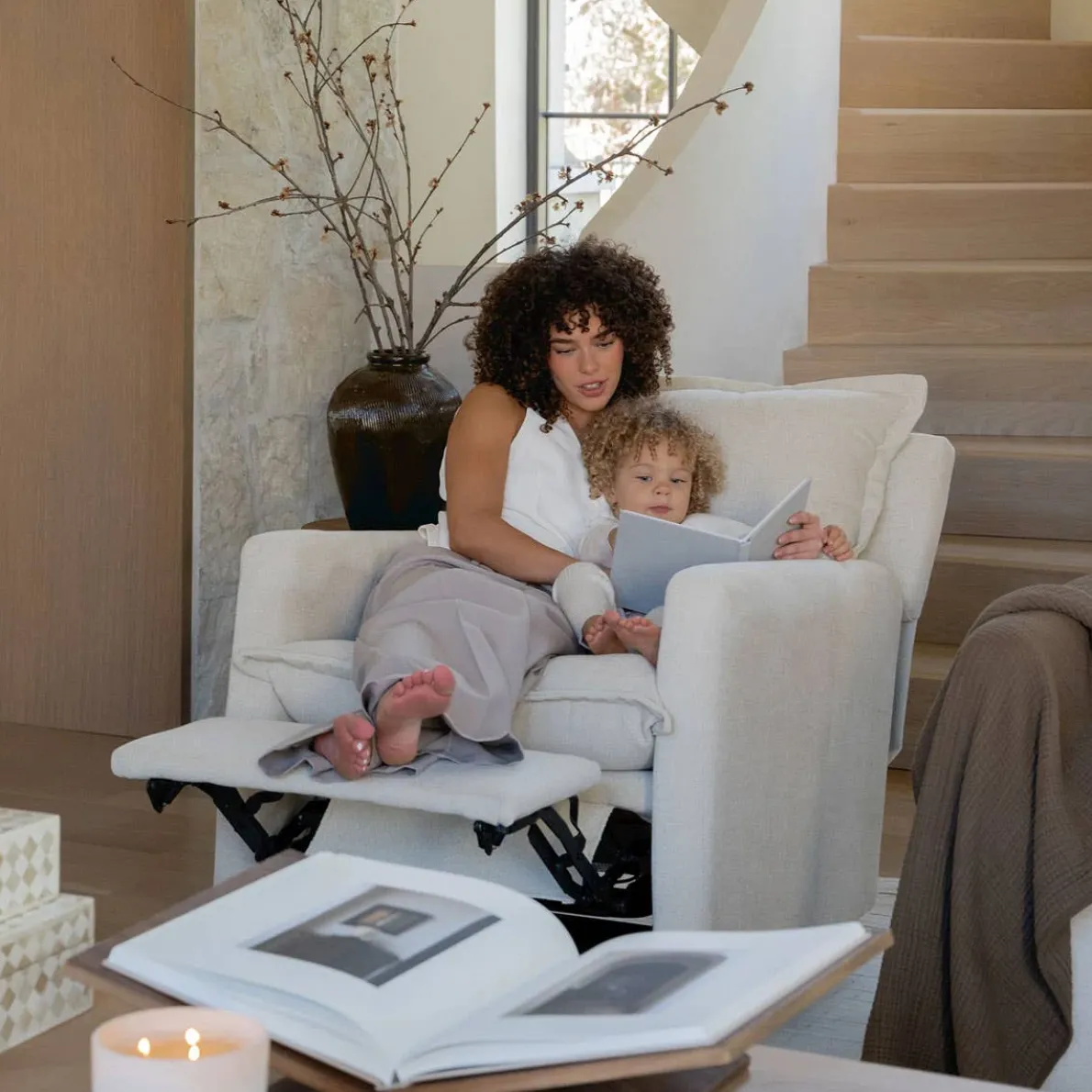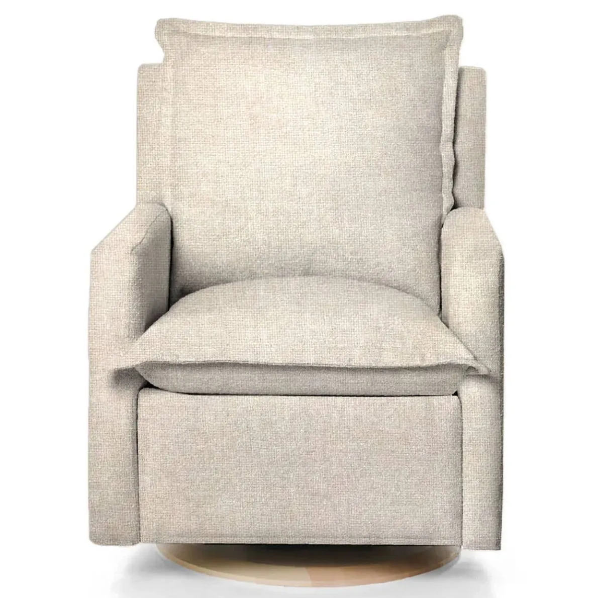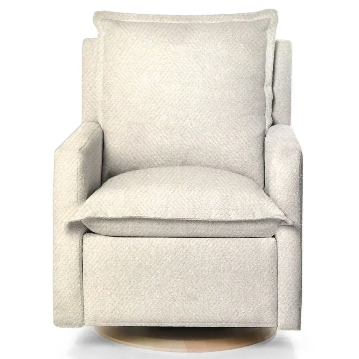 Oilo exclusive Flynn Recliner Glider not only glides, but has a full 360º swivel motion. The Flynn features plush down cushions that allow you to sink into the chair to find your perfect spot, and a hidden recliner lever on the inside of the arm which is easier to reach and has no bulky handle on the outside of the chair. Embrace style, comfort, and sophistication!
