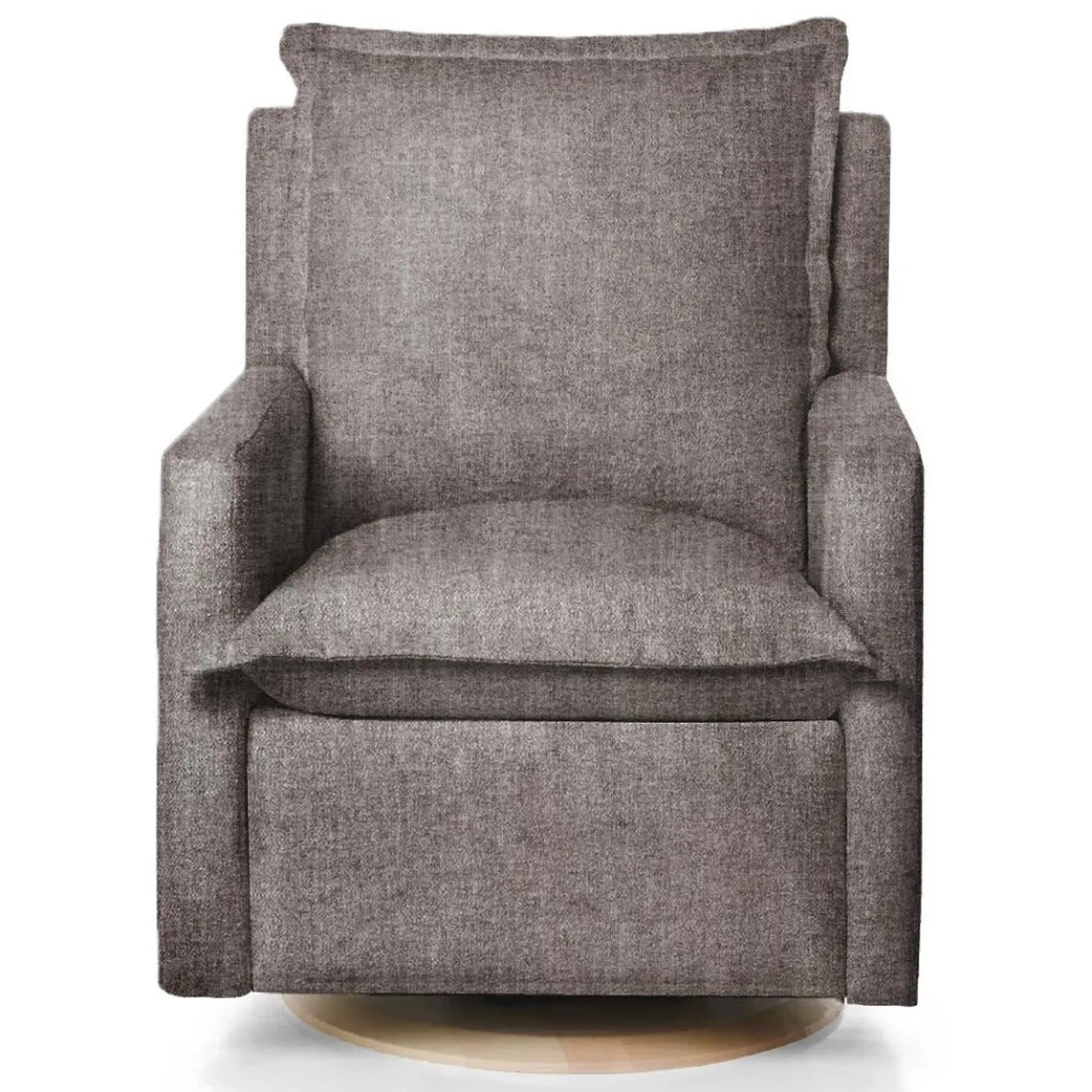 Oilo Flynn Recliner not only glides, but has a full 360º swivel motion. The Flynn features plush down cushions that allow you to sink into the chair to find your perfect spot, and buttons on the side of the chair to recline which is easy to reach. Embrace style, comfort, and sophistication!