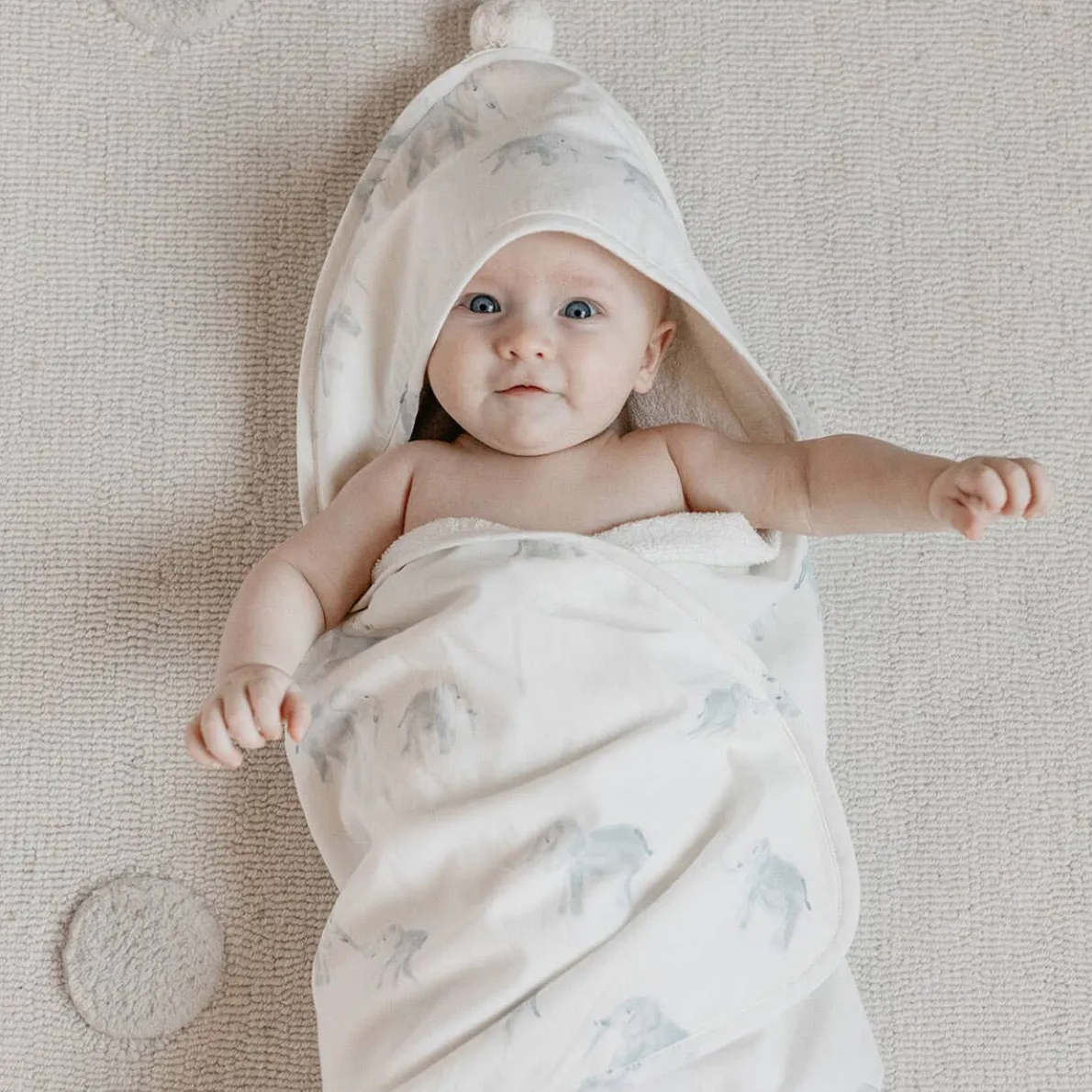 Warm up your little one post bath with our cozy Hooded Towels. Made from plush, absorbent French terry and backed with baby soft, brushed cotton, they make a perfect gift for the newest arrival.