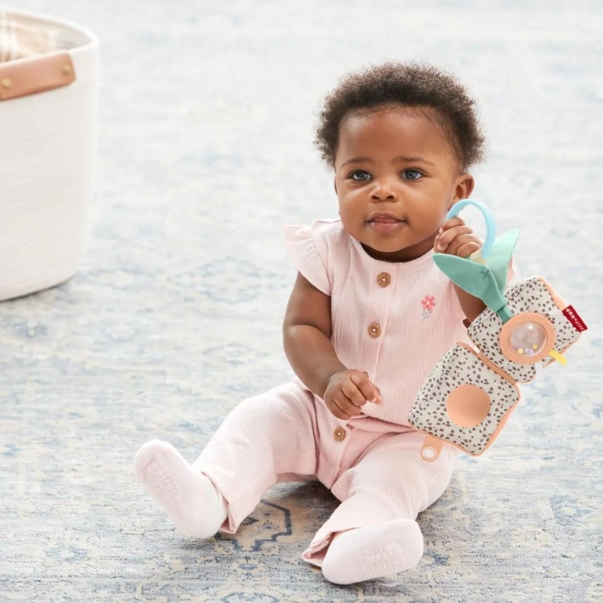 Budding gardeners will love to explore skip hop engaging potted plant baby stroller toy. Featuring an open & close peek-a-boo design, inside baby will find (surprise!) a rattle “bulb” plant. A plush textured exterior and crinkle leaves add multisensory fun—at home and on-the-go.