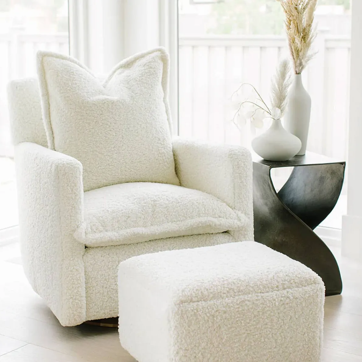 The gliding ottoman— Oilo offers coordinating ottomans for all their gliders, making them the perfect fit to complete your seating in your home, office or nursery. This ottoman includes a unique parallel rocking motion for maximum comfort. Embrace style, comfort, and sophistication!
