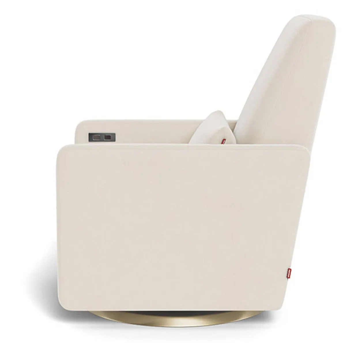 The Motorized Grano Glider Recliner is a stream-lined, comfortable and well-designed chair — just like the Original Grano — only this cordless motorized version includes automatic reclining buttons. Enjoy the soothing glide, then when you are ready to recline – hold the button and your feet will be raised on the foot rest, followed by your back reclined effortlessly. So comfortable!! Matching ottoman also available.