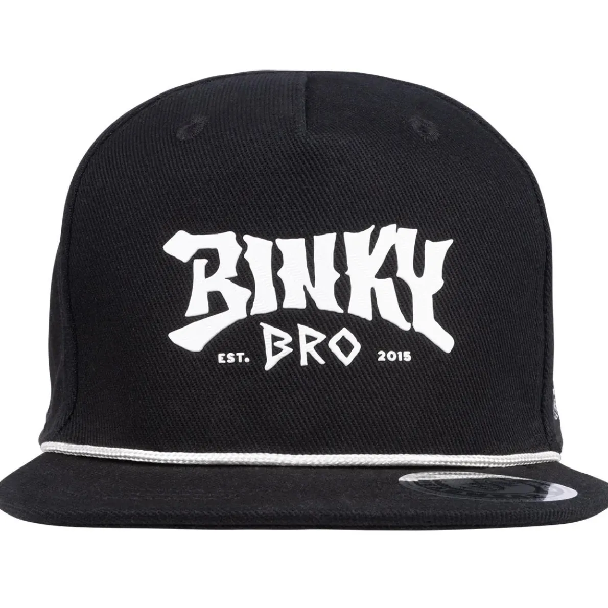 - The Camden snapback hat has black paneling and features a branded “BinkyBro” embroidered logo. This hat is 100% cotton.