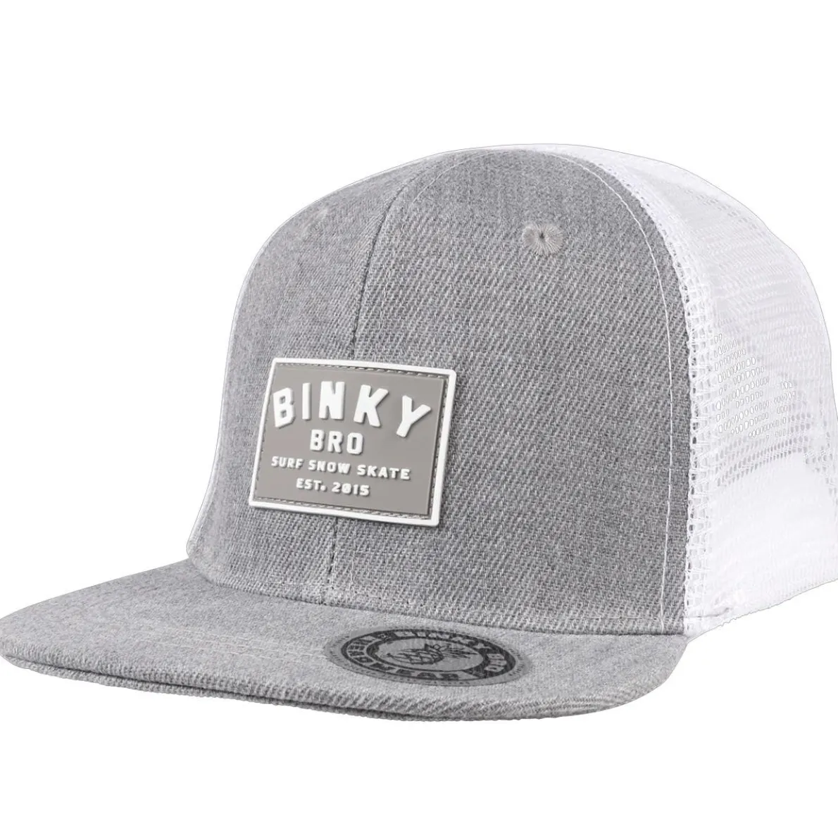 - The Benny snapback hat has grey front paneling and white mesh for the back paneling. The front logo is an BinkyBro Surf Snow Skate patch. This hat is 100% polyester.