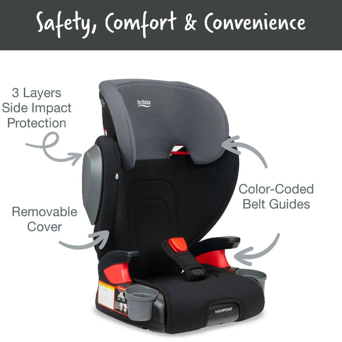 3 layers of full body side impact protection include external cushions, an energy-absorbing shell, & a 10-position, quick-adjust headrest. It’s thoughtfully designed to fit 3-across in most vehicle seats, while still providing spacious comfort for your child.