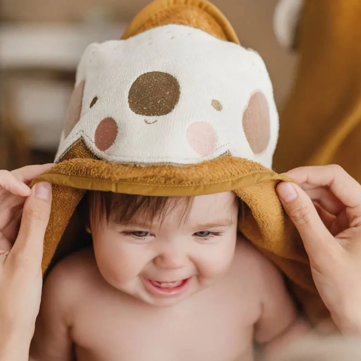 Super absorbent, this hooded towel will give your little baby one more reason to love bathtime! Cozy and comforting it will keep your little bunddle of joy warm and dry.