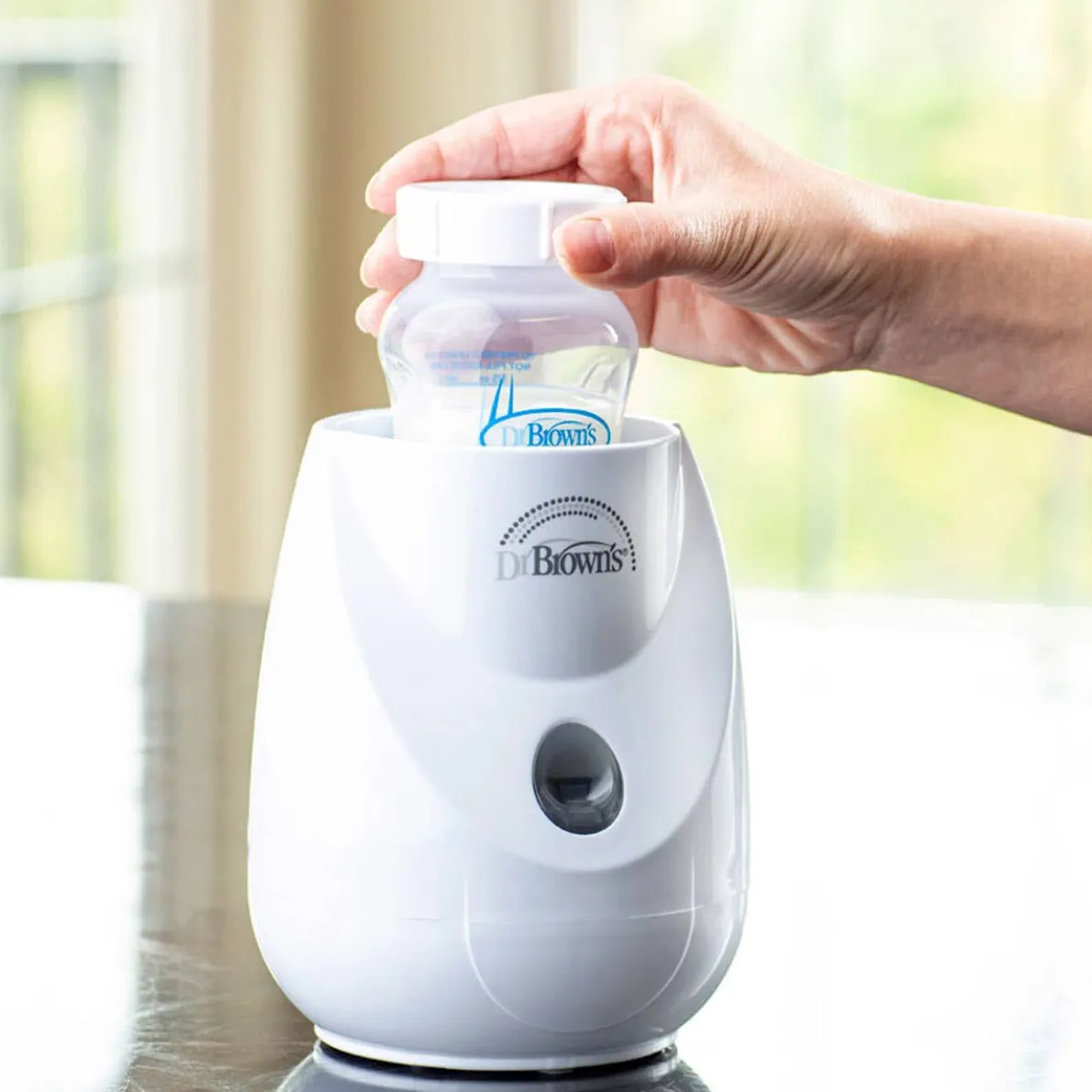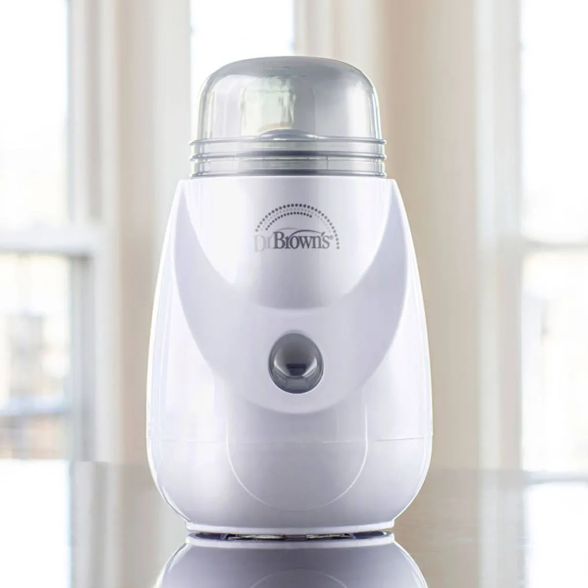 Quickly and safely warm baby bottles and food jars with Dr. Brown’s™ Insta-Feed™ Bottle Warmer and Sterilizer! This baby bottle warmer is compact to minimize clutter and warms in as little as 80 seconds.