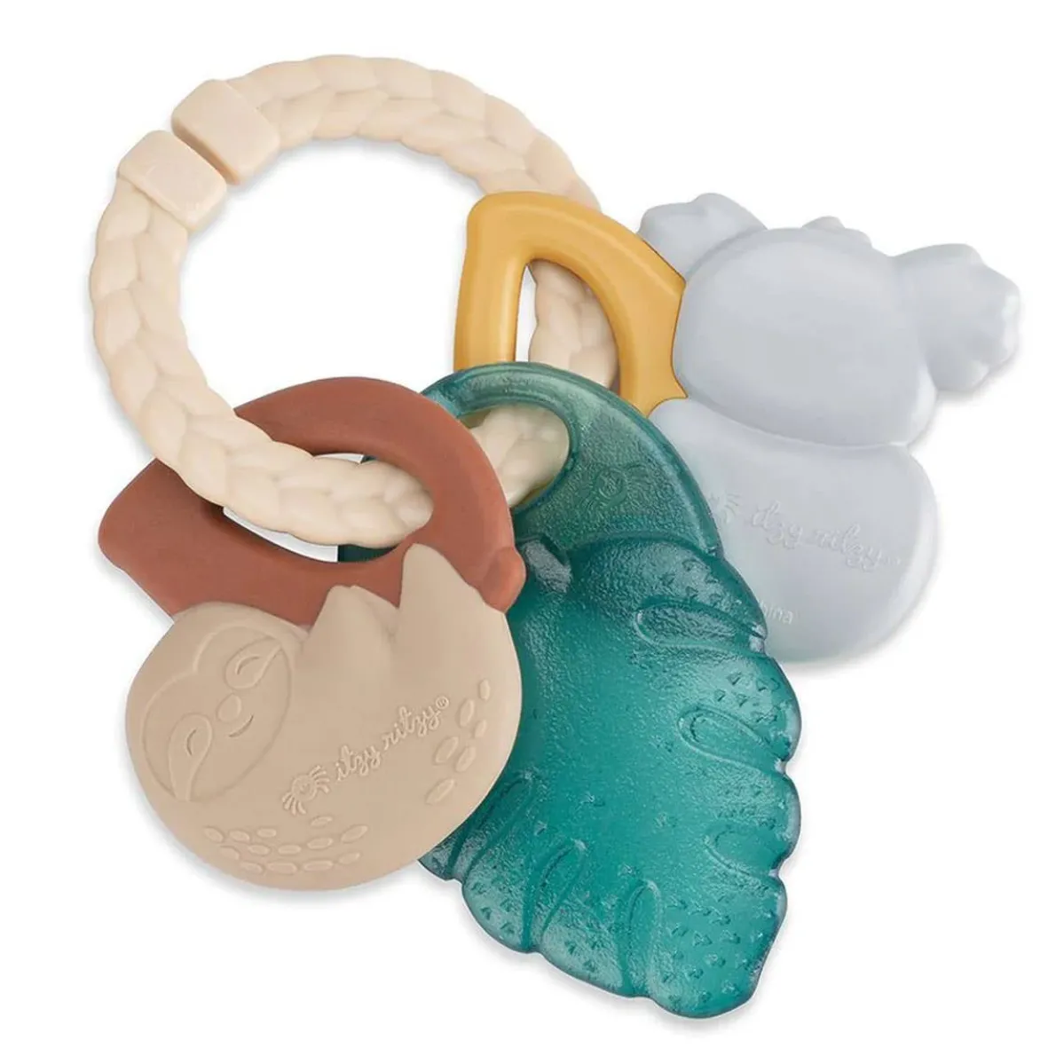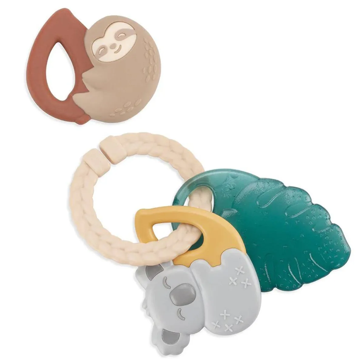 Chew on this! Itzy Keys™ are the perfect accessory for teething baby! The textured baby teethings rings are easy for baby to hold and include a silicone sloth, cold water-filled leaf and koala teether toy–all ready to help soothe baby’s sore gums throughout different stages of teething. Don’t wait until the molars are in–your baby’s mouth will thank you!