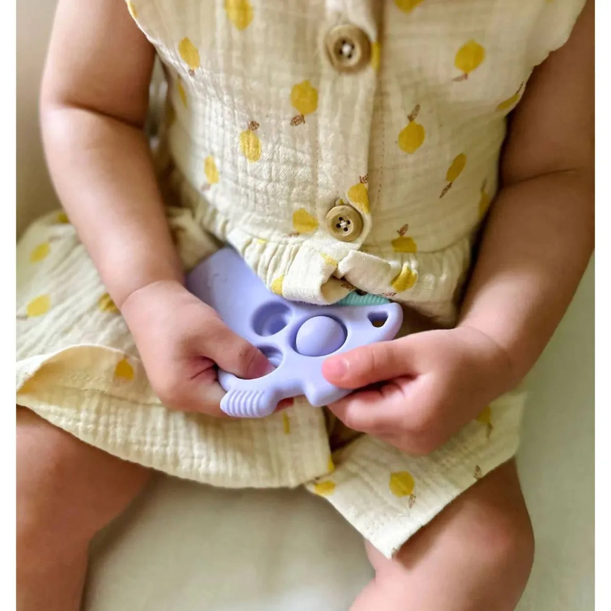 Chew on this! A pop of personality: a teething bestie and baby sensory toy all-in-one! Our Itzy Pop™️ push bubble toy is the perfect way to engage your little one’s mind and senses. The push pop movement and sounds will keep baby’s attention while the raised silicone dimples gently soothe sore gums.