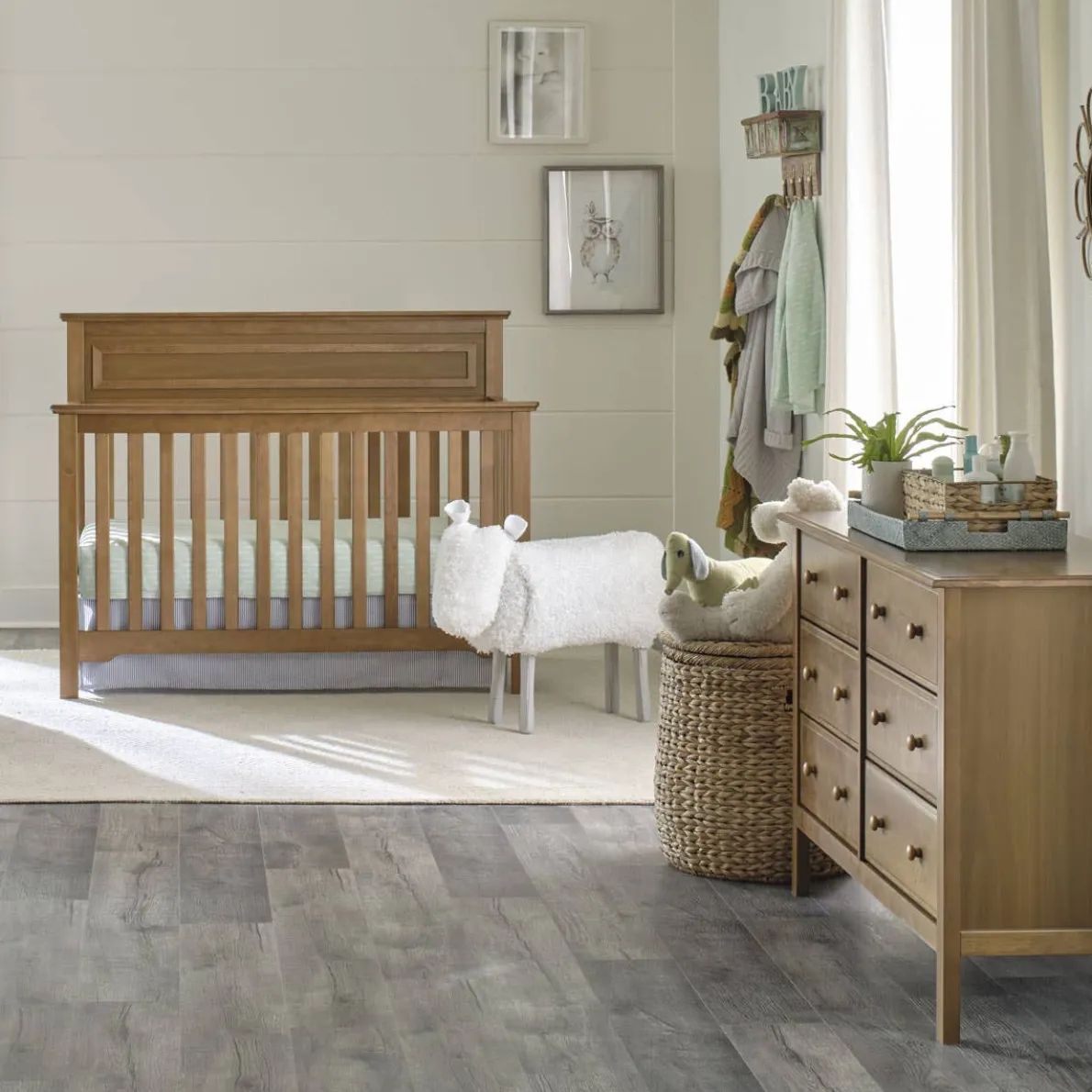 Simply sophisticated, the Jayden 6-Drawer Double Dresser offers the optimal storage solution for any nursery or home. Pairing effortlessly with both the Jayden and Autumn Collection, the Jayden Double Dresser features the same transcending quality design. Made of durable New Zealand pine wood with new and improved metal drawer glide hardware and stop mechanism construction, Jayden provides a smooth and safe glide for long-lasting use through the years.